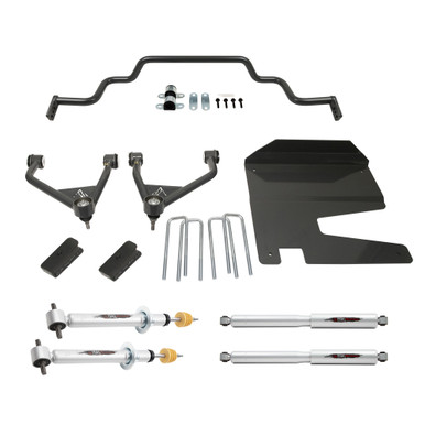 Belltech’s precisely engineered lift kits include custom-designed front height-adjustable Trail Performance struts and rear Trail Performance twin-tube shocks. These lift kits improve ride quality, retain factory alignment cams and specifications, retain factory track width, and most importantly, do not induce bump steer.