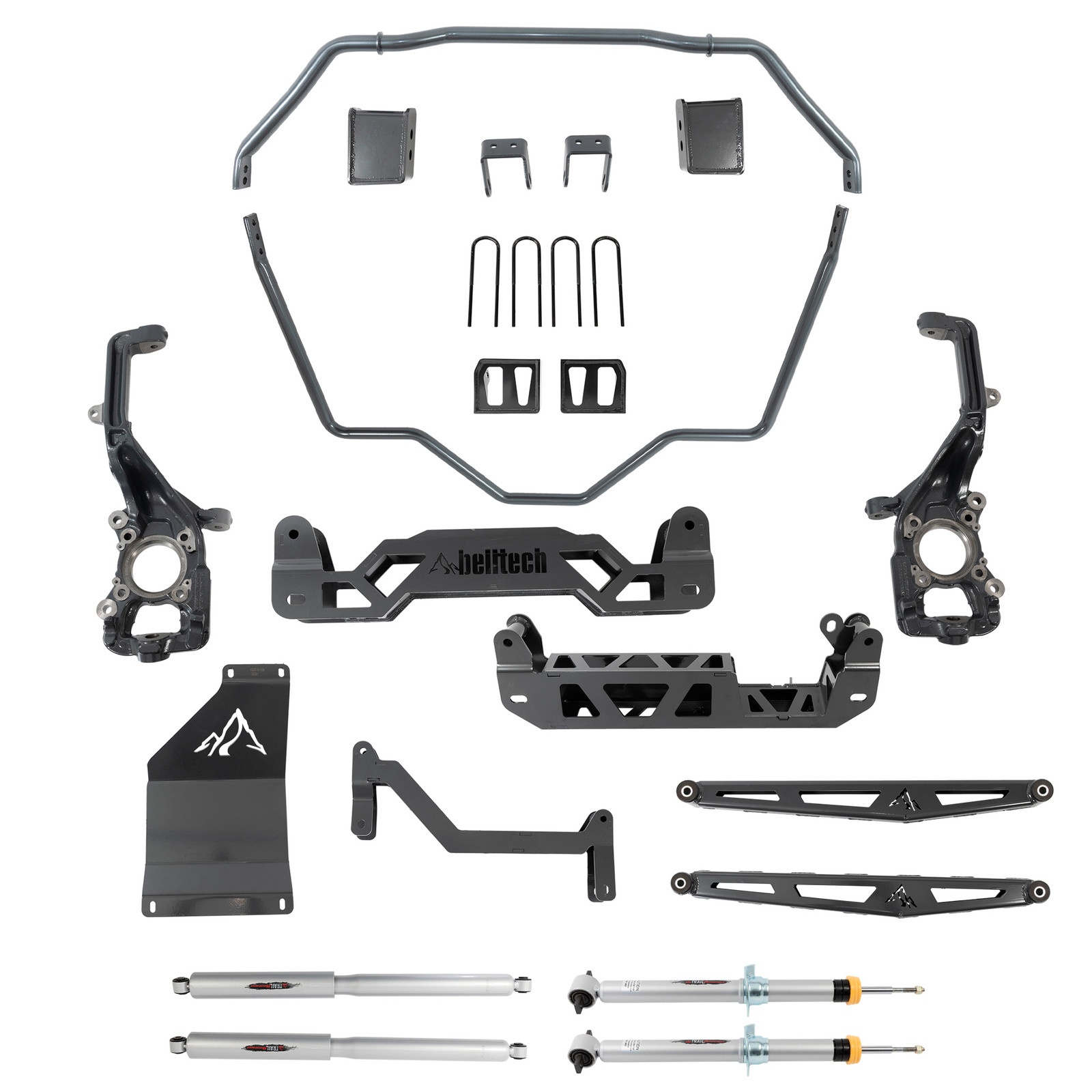 | 2024 - 2025 | Ford | F-150 | STX | 4WD | 2.7L | GAS | Crew Cab Pickup | F1: WILL NOT fit hybrid models. F2: WILL NOT fit diesel engine models. F3: Minimum wheel size 18" (Fits most OEM 18" wheels). F7: Does not fit models equipped with Ford's Continuously Controlled Damping (CCD) Lifting Rate: F: 5.0"-7.0" / R: 4.0" |