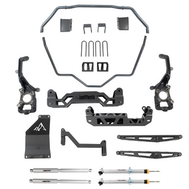 | 2024 - 2025 | Ford | F-150 | STX | 4WD | 2.7L | GAS | Extended Cab Pickup | F1: WILL NOT fit hybrid models. F2: WILL NOT fit diesel engine models. F3: Minimum wheel size 18" (Fits most OEM 18" wheels). F7: Does not fit models equipped with Ford's Continuously Controlled Damping (CCD) Lifting Rate: F: 5.0"-7.0" / R: 4.0" |