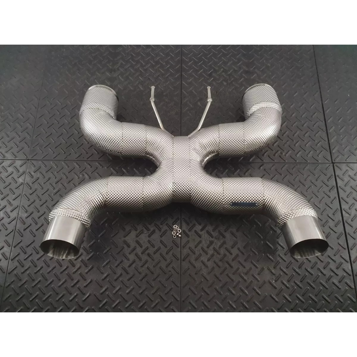 Unleash the sound and presence of your 2017-2022 McLaren 720S 4.0L M840T twin-turbocharged V8 with Redstar's Race-X muffler-replacement performance exhaust paired with lightweight Titanium tips. Black Ceramic Tips are available on request. Designed to work seamlessly with Redstar downpipes while retaining full compatibility with factory components, the muffler section bolts directly to the OEM catalytic converters and accepts OEM or aftermarket tips. 3.5 inch systems require matching 3.5 inch downpipes.