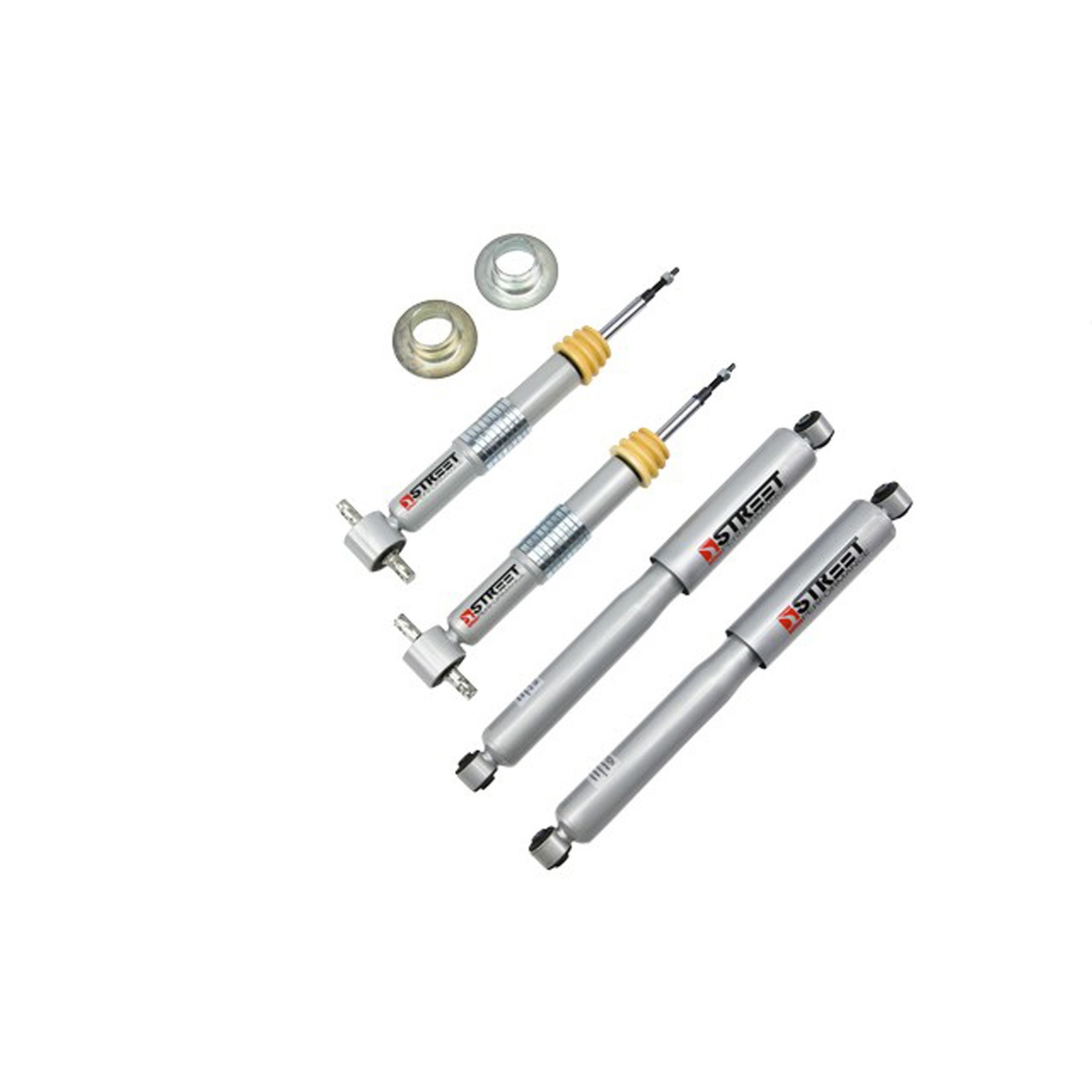 Shocks features include: Metal dust boots, hardened chrome 15 mm piston rods, triple lip NBR rod seal, Teflon guide bushing, 35 mm pistons with low-friction Teflon seals, 51 mm wide body for increased oil volume and OEM-quality rubber bushings.