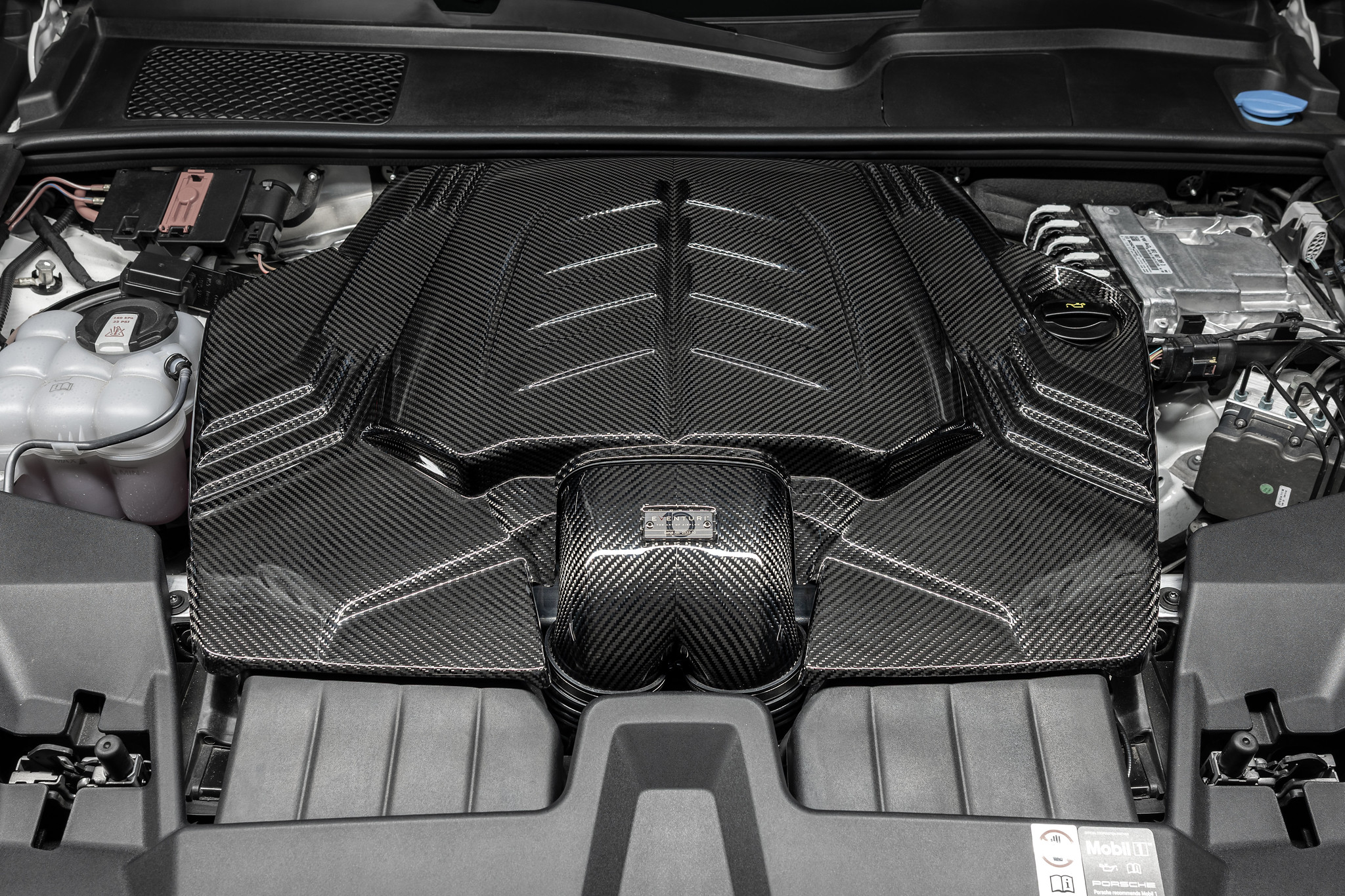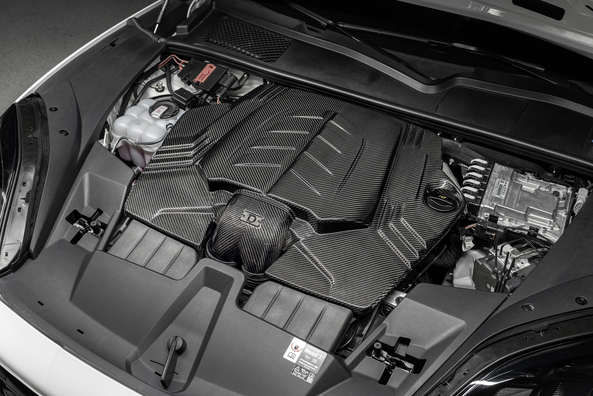 Our 4.0TFSI V8 EA825 intake has now been updated to fit the 2025 facelift Cayenne Turbo variants. Every component including the lid has been developed to allow the V8 twin turbos to pull in air with less drag resulting in noticeable improvements to the power delivery. The stock airbox lid itself creates a restriction on the size of the flow collector which feeds the inlets from the filters. So we increased the height of the central section of the lid to allow for a larger flow collector and larger cone filters to be used. This removes the inherent restriction and sets our intake apart from the rest of the field who by utilising the stock lid must also use a restricted collector and filtration media. The turbo inlets are up to 43% larger in cross sectional area than stock and are designed for maximum volume. The extra volume enables the turbos to respond faster resulting in a noticeable improvement in throttle response.