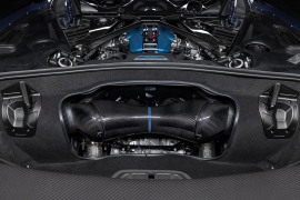 Building on our proven success with the C8 Stingray and Z06 platforms, we elevated the ZR1 system even further by incorporating high-flow turbo inlet tubes, each designed to be 30% larger in volume compared to the OEM tubes. This allows the turbochargers to achieve peak boost targets with greater efficiency. Unlike the factory configuration, our intake system is not constrained by the OEM trunk panel. This freedom allowed us to engineer a significantly larger intake architecture while also transforming the engine bay presentation. A clear polycarbonate trunk panel reveals the full carbon fibre intake system when opened—turning the engine compartment into a visual centrepiece.
