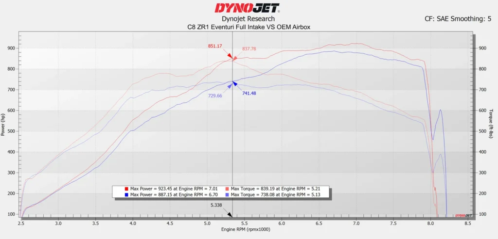 The result is a substantial increase in power and torque across the entire RPM range, highlighted by a transformative improvement in mid-range performance—delivering the responsiveness and acceleration the C8 ZR1 platform truly deserves. More details on our patented technology can be found.