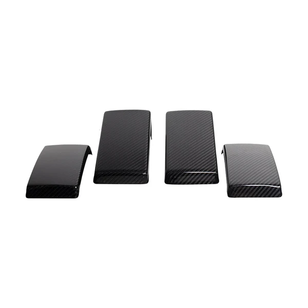 A set of four overlay carbon caps for the original plastic over-riders on the front and rear bumper.