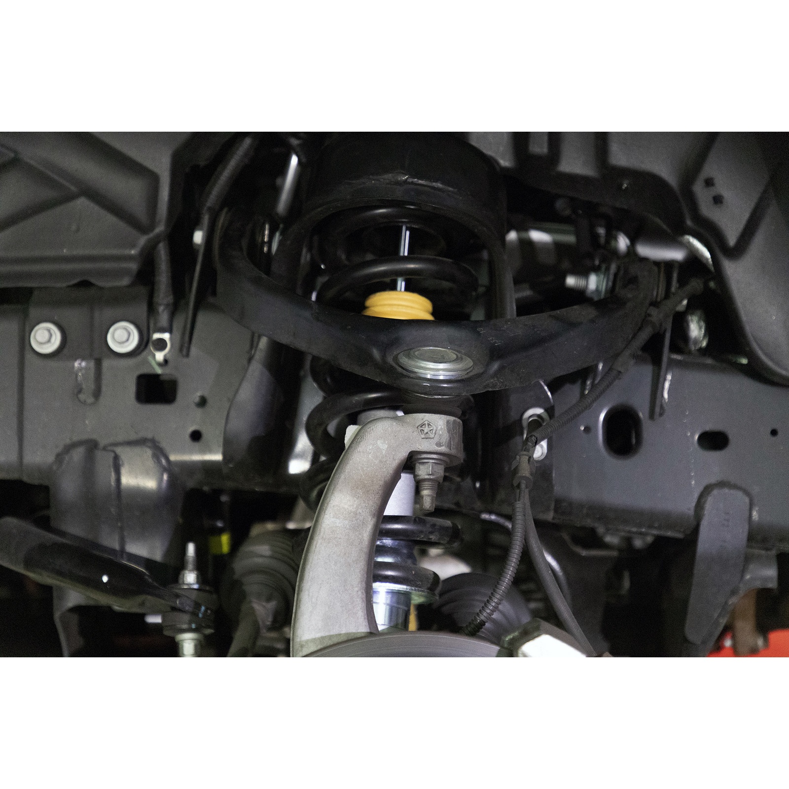 Shock features include: metal dust boots, hardened chrome 12.5 mm piston rods, triple‑lip NBR rod seal, Teflon guide bushing, 30 mm pistons with low‑friction Teflon seals, 45 mm wide body for increased oil volume, and OEM‑quality rubber bushings.