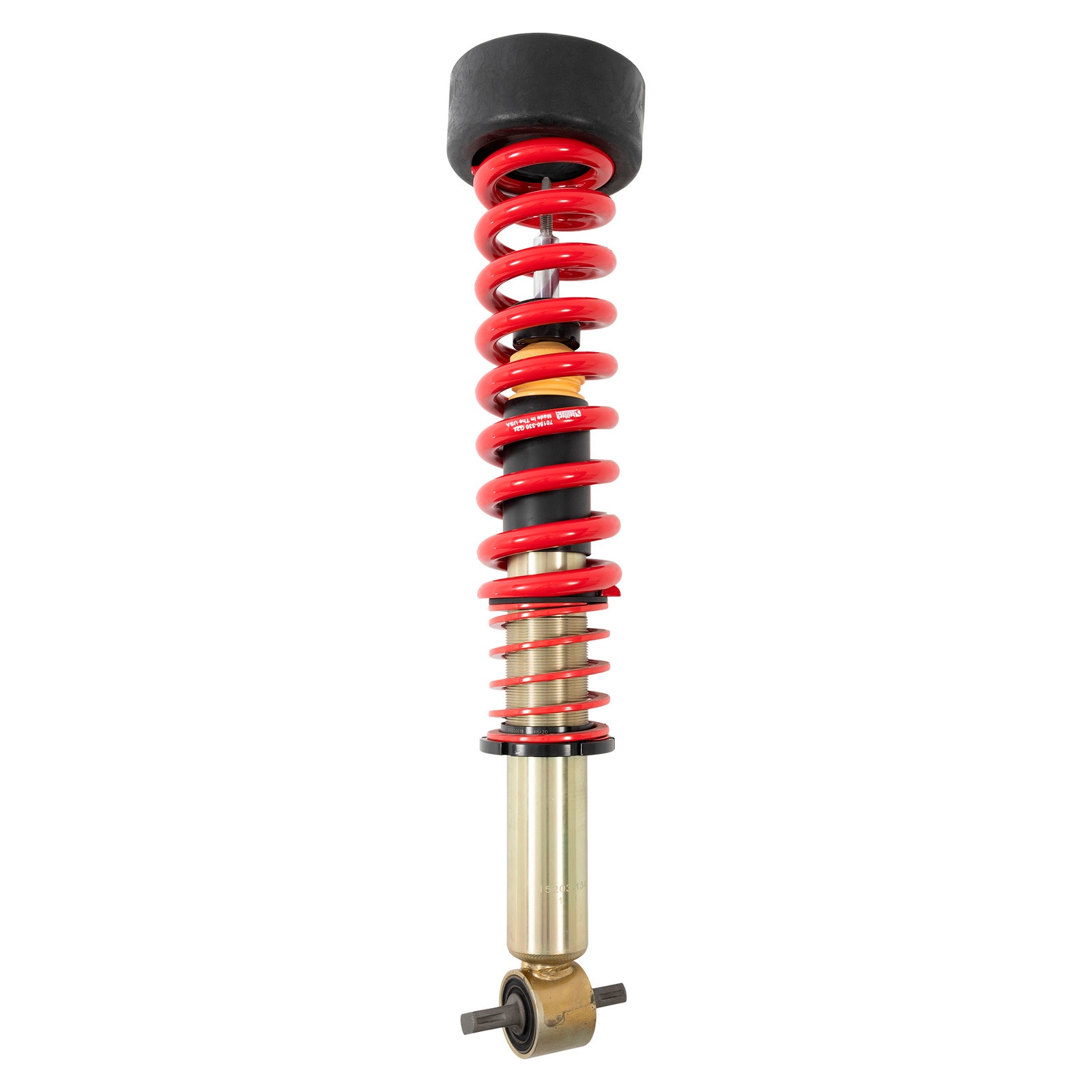 The front and rear suspension includes our robust Belltech Street Performance struts. They are created with high-quality, multi-functional components that are built to last. Each strut features a large, 2” (50mm) damper body and 35mm independent rebound and compression valves. Together, these details keep oil cool and deliver precise, consistent damping throughout your journeys. Belltech uses a patented ring spacer design to offer height adjustability in half-inch increments. The struts use a progressive-rate polymer, open-cell bump stop for ideal bump stop engagement, and the OE top mounts for simplified installation.