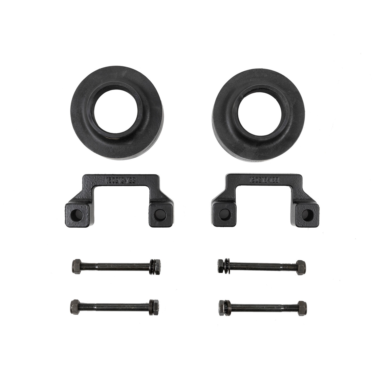 Dependable Belltech spindles lower the front end and retain the factory suspension geometry. Our spindles are made of high-strength ductile iron and are powder-coated for a long-lasting, durable finish. The front suspension includes Street Performance lowering coilovers made with high-quality, multi-functional components that are built to last. Each coilover features a finely tuned threaded damper with a large 60mm damper body and 35mm independent rebound and compression valves. Together, these details keep oil cool and deliver precise, consistent damping throughout your travels. The external threads and spring perch provide height adjustability to set the ride height you want. The coilovers include a large main spring and smaller helper spring that are made of cold-formed tensile steel and are powder-coated to prevent rust and wear. We include a progressive-rate polymer, open-cell bump stop for ideal bump stop engagement, and OE-style top mounts for easy installation.