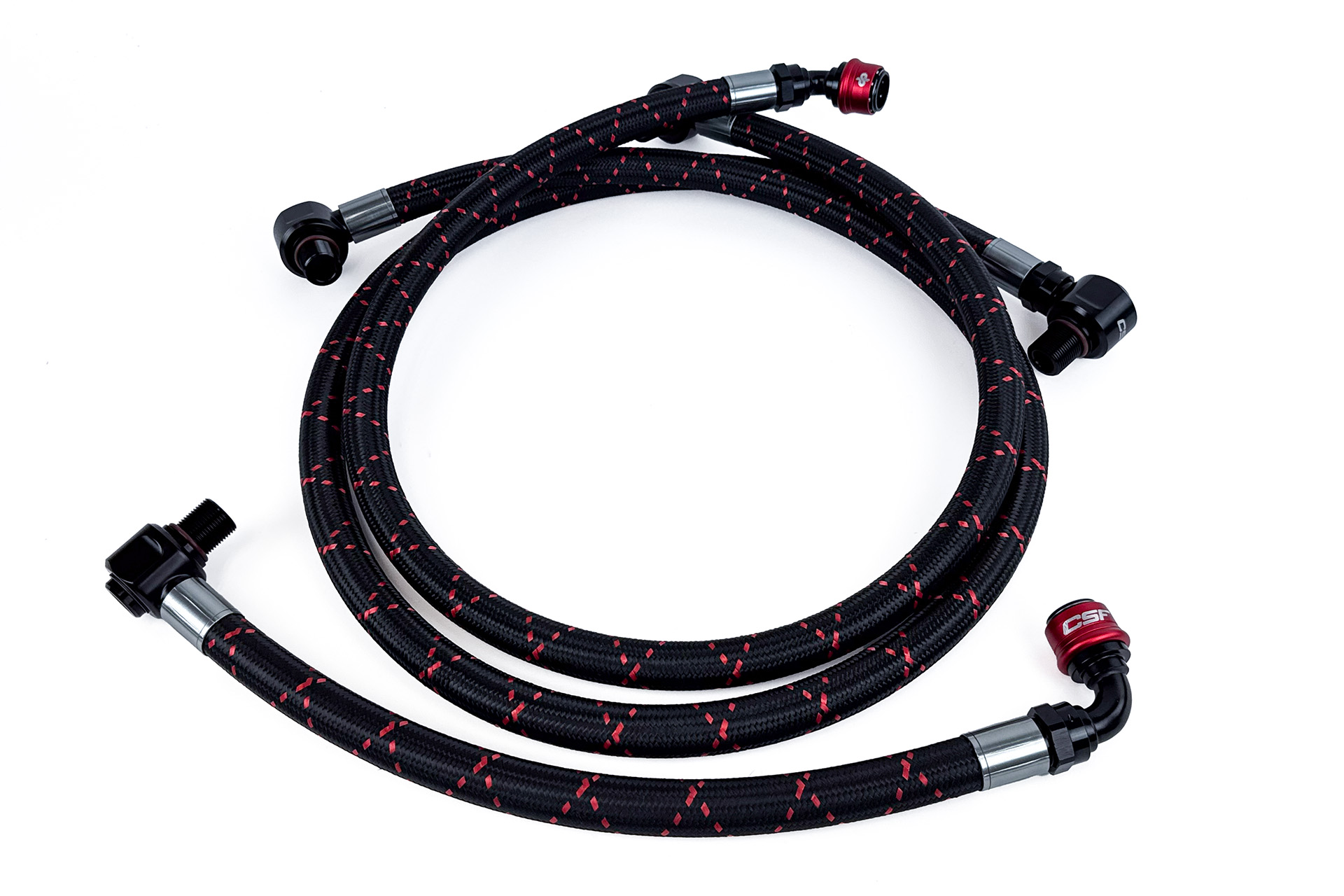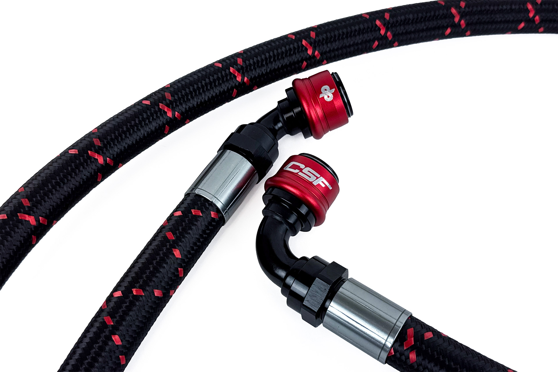 The DYME PSI fittings are hydraulically crimped to their motorsport quality Superstrasse CPE lined 304 stainless steel braided lines. DYME PSI manufactures these lines and fittings in house to CSF exact specifications with the highest level of quality and precision. These lines offer the best flexibility, flow, and chemical resistance possible.