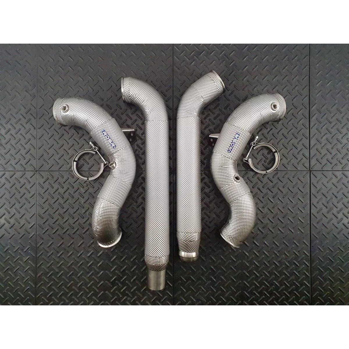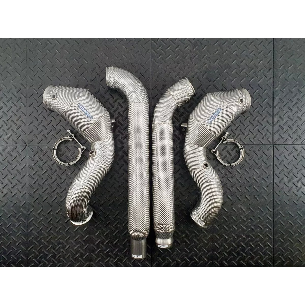 Transform the soundtrack and response of your Mercedes AMG GT, GTS, GTR and GTC C190/R190 with Redstar performance exhaust downpipes for the M178 4.0 twin-turbo V8. Designed as a direct, bolt-on replacement for the factory downpipes across 2015-2021 models, this system unleashes that distinctive AMG V8 character with the burbles and crackles enthusiasts demand.