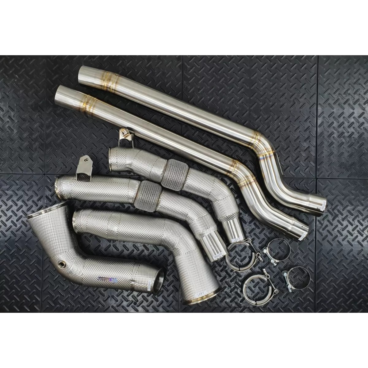 Unleash your Audi with Redstar performance exhaust hardware engineered for the C8 platform. This downpipes and resonator delete package is developed for the biturbo RS7 Sportback Sedan / RS7 Performance and RS6 Avant / RS6 Performance / RS6 GT, with an available V-band downpipe to resonator delete connection for a precise fit.