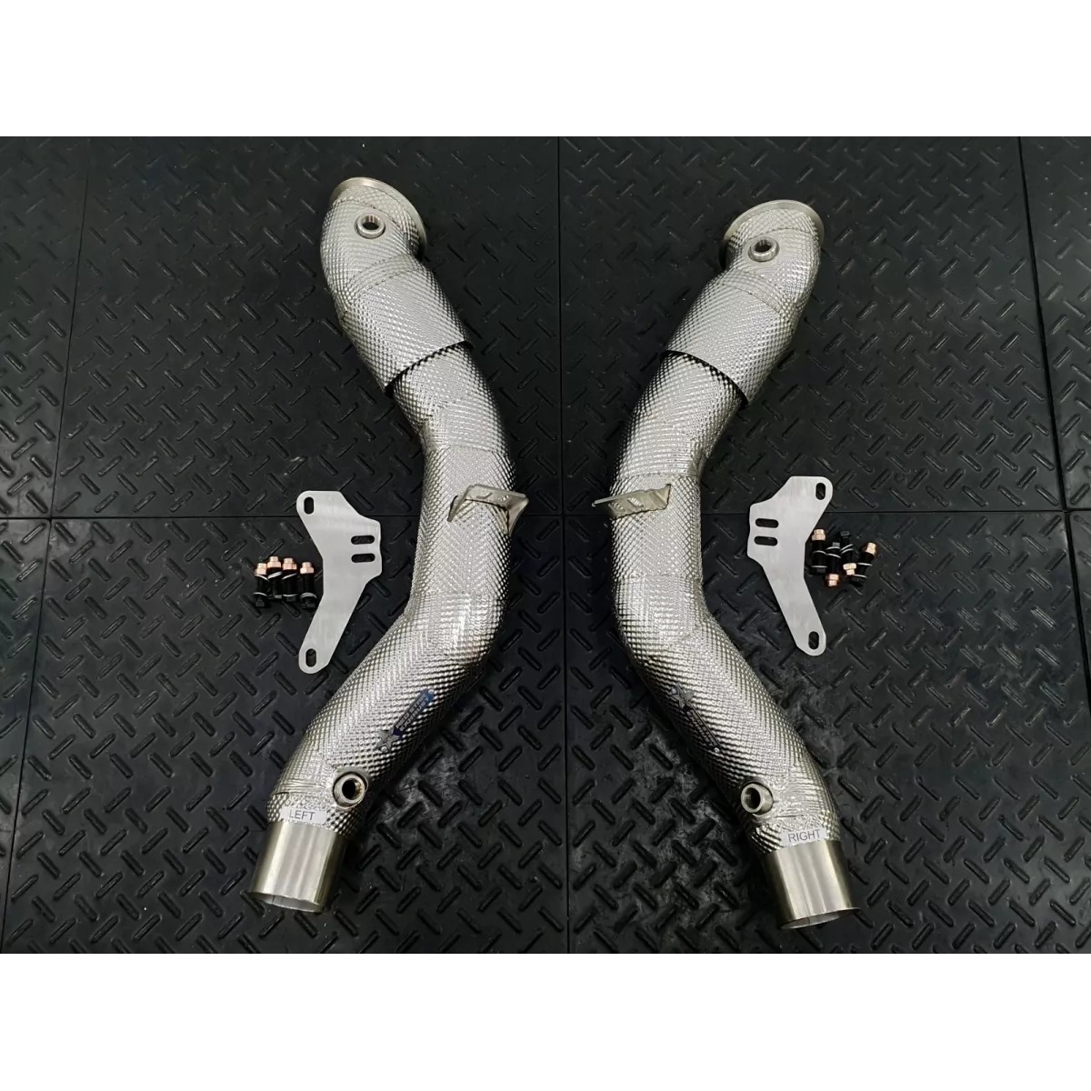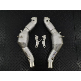 Unleash the potential of your 2015-2019 Ferrari 488 GTB, 488 Pista, and 488 Spider Type F142M with Redstar performance exhaust downpipes. Engineered as a direct, bolt-on upgrade for the OEM downpipe assemblies, this system is available with high-flow catalytic options including HJS HD 200cpsi and GESI GEN2 400cpsi, as well as a competition catless configuration for maximum flow.