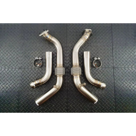 Transform your 2016-2020 Porsche Panamera 4S 971 2.9L V6 Twin Turbo or 2016-2020 Porsche Panamera 4 E-Hybrid 971 2.9L V6 Twin Turbo with the Redstar Exhaust Secondary Cat Delete downpipes. Engineered to integrate with the OEM split design, this secondary cat delete replaces the factory secondary catalytic converter section and installs as a true bolt-on performance exhaust upgrade.