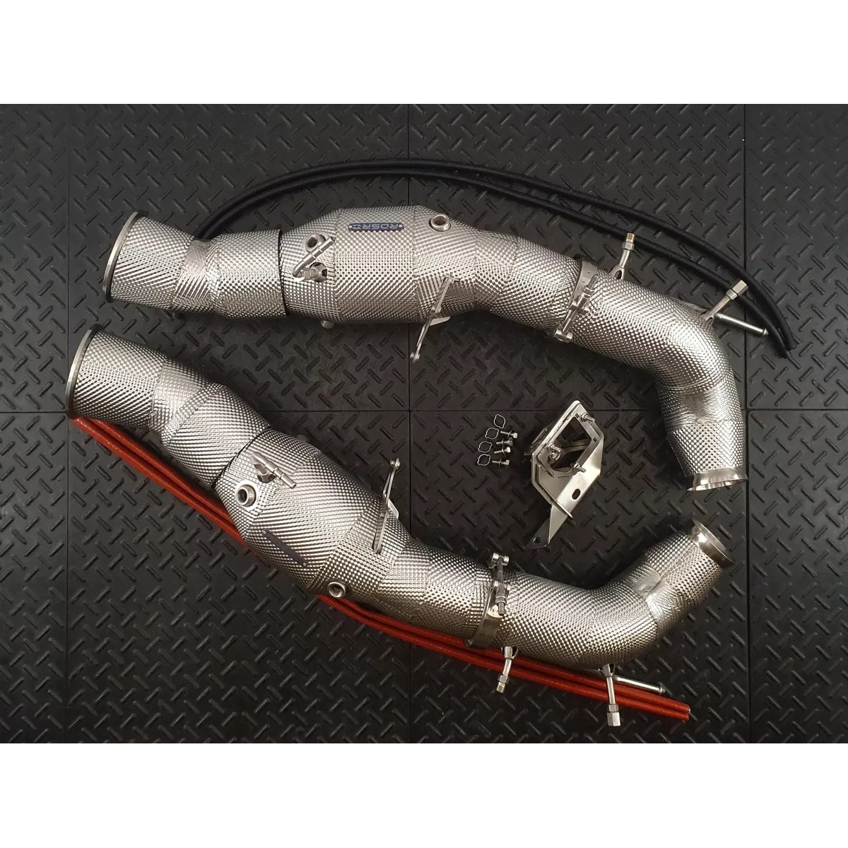 By reducing backpressure and improving gas flow from the turbos, you can expect faster spool-up, sharper throttle response and meaningful power gains, alongside a noticeable weight reduction. Heat management is improved to help lower under-bonnet temperatures, supporting component durability and turbo longevity. The assembly features a billet titanium exhaust tip section and robust 2.0mm wall 304 stainless construction that is TIG welded and back purged for strength and consistency.
