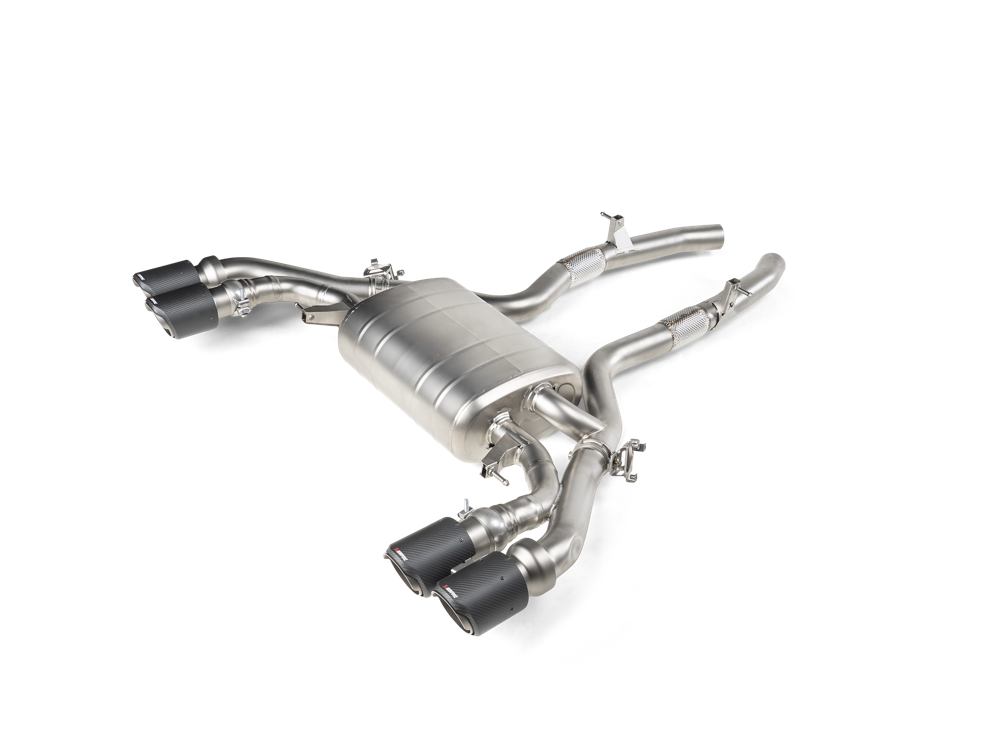 Constructed from high-grade lightweight titanium with two pairs of titanium / carbon-fibre tailpipes and featuring exhaust valves with housings cast in the in-house foundry, the Slip-On Line is a stunning design that combines performance with an incredible soundtrack and huge visual appeal. The sound has been tuned to ideally suit the in-line six-cylinder turbo engine, delivering an increase in the volume sensation, which provides exciting acoustic feedback when shifting through the gears. Any unwanted drone is eliminated. Fully ECE-compliant, the Slip-On Line (Titanium) provides power and torque increases over the BMW SUV with the stock M Sport exhaust system throughout the entire rev range, as measured by Akrapovic’s skilled engineers. The use of state-of-the art materials reduces the weight by 10.7 kg compared to the M Sport exhaust. The optional Evolution Link pipe set (Titanium) and an Akrapovic Sound Kit can be added to upgrade the package. When fitted with the optional Evolution Link pipe set (Titanium) and Akrapovic Sound Kit, ECE type approval is no longer valid.