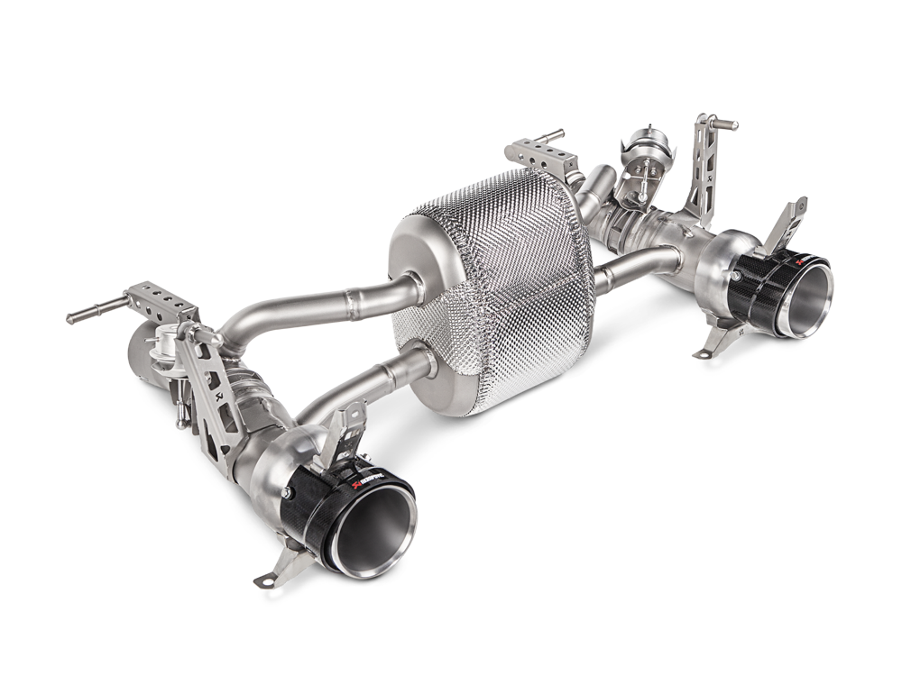 Featuring 200 CPSI high-flow high-quality metal cats and larger insulated tubes. The set increases performance due to less restricted flow through the cats and lowered backpressure, resulting in increased power. Sound levels will also be enhanced, with an increase of 10 dB in external sound performance, emphasizing the character of the engine to provide more of the traditional V8 flat crank feel. When fitting the optional link pipe set with catalytic converters, remapping the car’s ECU is necessary.