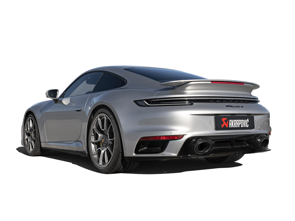 All of the knowledge and experience gained while working with various engines from the sports car manufacturer from Stuttgart was poured into this outstanding aftermarket exhaust system. Produced from lightweight titanium, the system uses complex parts meticulously crafted using the in-house titanium foundry to offer perfect acoustics. An instant deepness prevails from the moment the engine is started and as the revs rise, and so does the sensory involvement. At low rpms the exhaust emits a deep, iconic flat-six rumble, moving through a powerful mid-range, which then develops into a rich, strong, and high-frequency acoustic sensation at high revs, perfectly tuned to upshifts, providing a thrilling experience as the higher gears are selected and exhilarating, race-inspired burbles through the downshifts. This sound pattern is achieved with a carefully calculated H-link between the main pipes, which is precisely welded at a selected position. The system has been developed for use on closed-course competition circuits, but there is no compromise on comfort because the tuning of the system eliminates any drone or unwanted flow noise. Power and torque increases have been recorded at +16.6 kW (22.5 hp) and +46.8 Nm at 3,400 rpm when tested in back-to-back runs on the Akrapovic dyno against a Porsche 911 Turbo (992) using the Porsche stock sports exhaust system, with the torque curve offering a perfect response from low down engine speed. The system is not EC/ECE type approved.