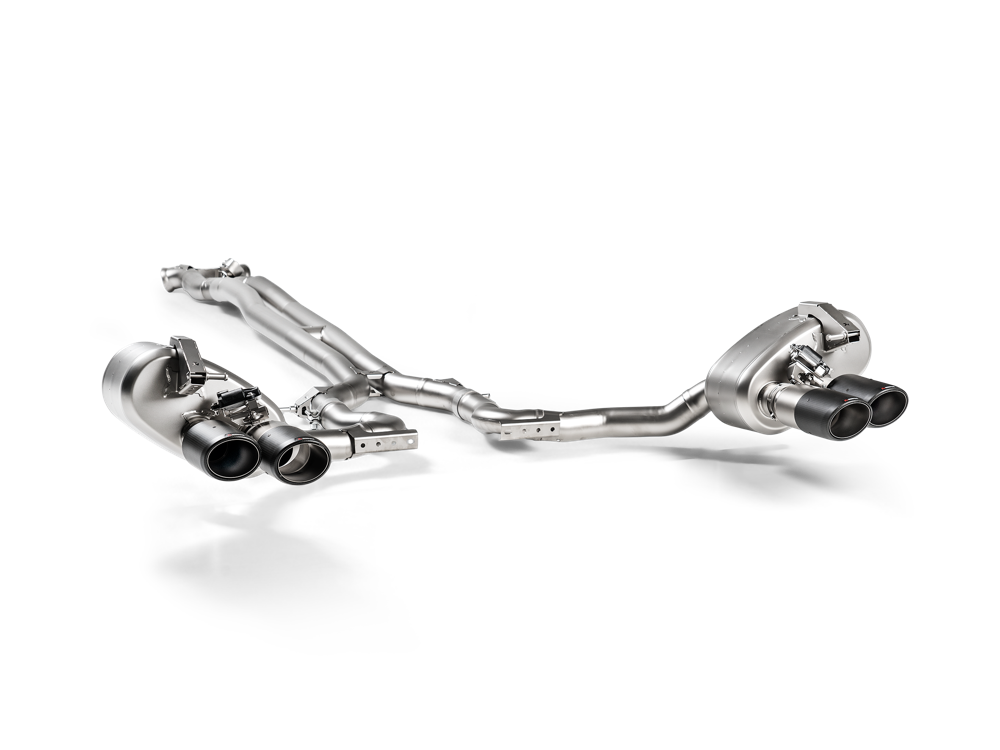 This stunning system is made completely from high-grade titanium. It includes parts cast in the company’s in-house foundry, featuring an active X connection and an additional pair of exhaust valves behind the rear mufflers, designed to provide optimal control of the exhaust sound for the best aural enjoyment. The system has been perfectly tuned to deliver the very best sound experience in all modes – enormous effort was invested to give it a sporty, deep higher-frequency V8 sound with an unmistakable Akrapovic character, while keeping it smooth and eliminating any drone for maximum everyday comfort. By using the optional Akrapovic Sound Kit, the driver can choose between a loud racy sound or a quieter note for long-distance driving, regardless of the mode chosen for the vehicle. The look of the Evolution system can also be further enhanced by adding four round titanium or carbon-fibre tailpipes.