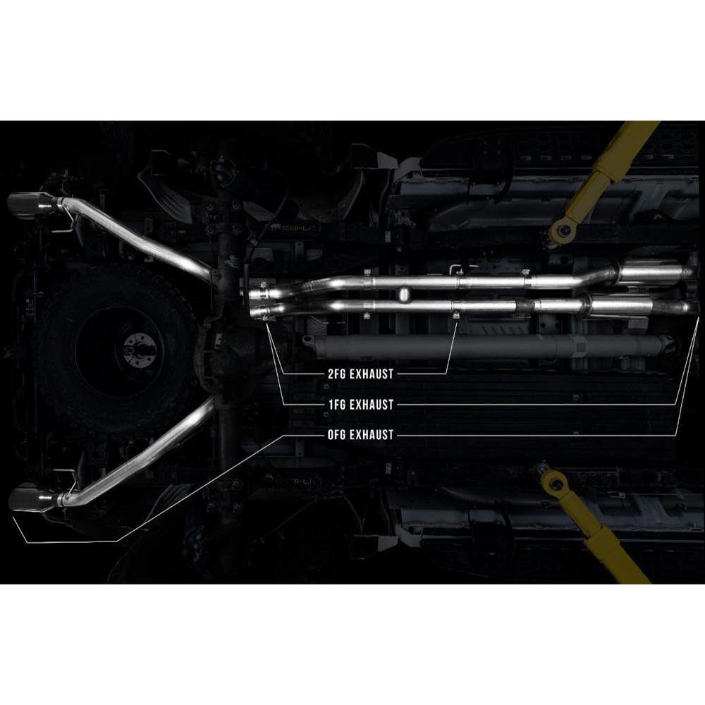 Using the same precision-engineered 3" H-pipe from the 2FG configuration, the 1FG Exhaust removes the factory front suitcase resonator as well and replaces it with two bespoke AWE resonated front sections. This version turns the Raptor’s exhaust route into a true dual configuration, producing an increase in volume and an aggressive, rasp and drone-free soundtrack fit for the Raptor. The AWE 1FG configuration grants a weight savings of 24 lbs over stock. Please note: in order to achieve the sound heard in our product videos, please allow 800-1000 miles for appropriate break-in of the 1FG/0FG configurations.The AWE Exhaust Suite for the Gen 2 Raptor is applicable to both SuperCab and SuperCrew models. Adapters for SuperCrew models are included with each AWE 2FG, 1FG, and 0FG Exhaust.