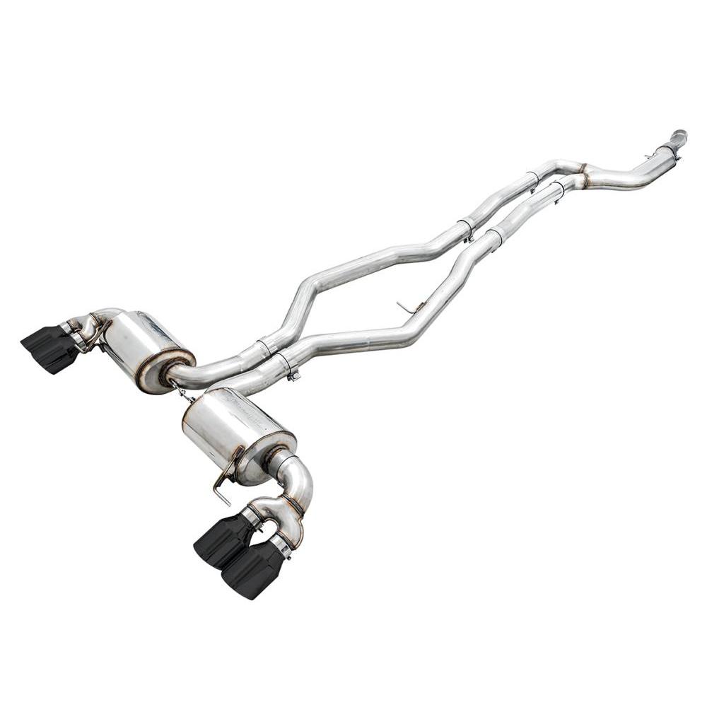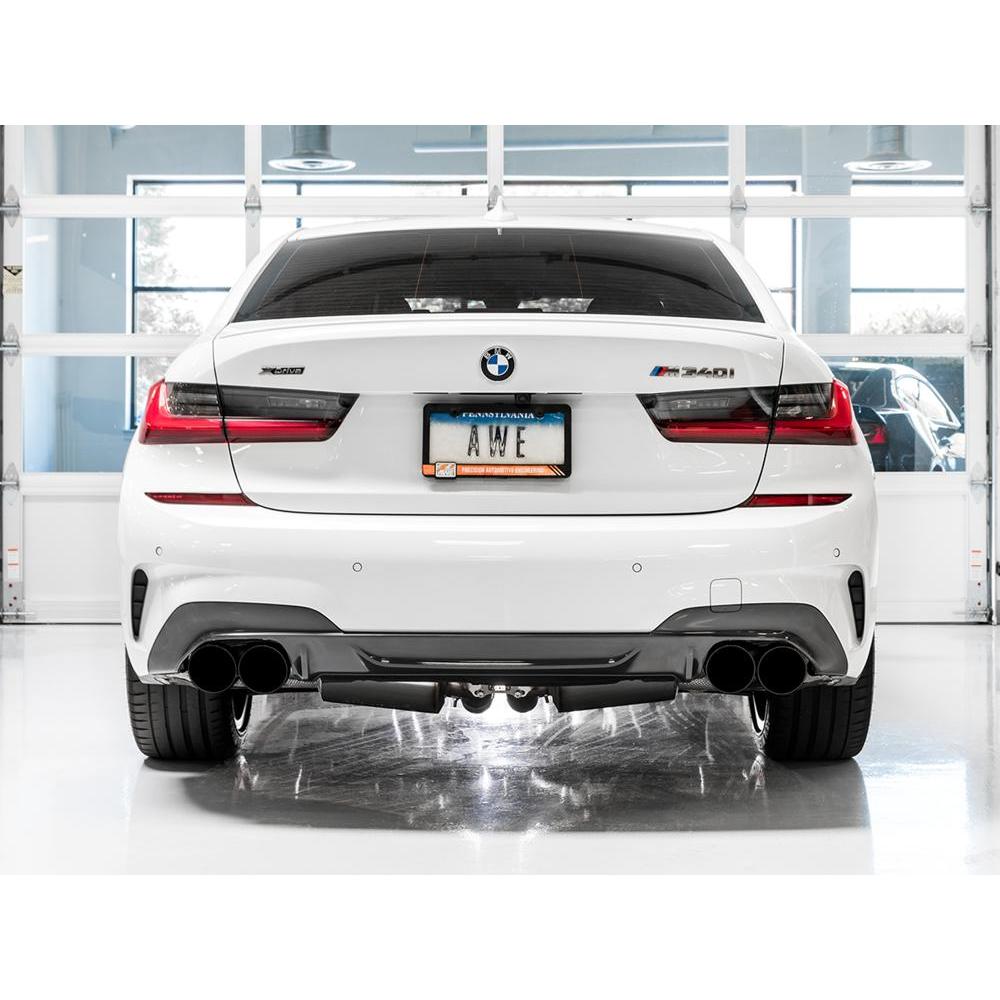 Presenting The Best Sounding Exhausts on the Planet for the BMW G20 M340i: At the intersection of sophistication and aggression lies the Touring Edition Exhaust. A dual 3” T304L stainless steel downpipe-back configuration, the AWE Touring Edition Exhaust is the perfect dose of steel for drivers looking for straight-pipe performance while not sacrificing daily drivability: a deep, sophisticated exhaust note with zero drone at highway speeds. Featuring a stamped stainless steel merge upstream equivalent to dual 3” tubing coming right off of the downpipe. Translation: an impressive 65% increase in flow over stock that future proofs for downpipes of various sizes. Beyond the unique merge, the exhaust splits into dual 3” piping to allow optimal flow throughout the entire exhaust route. Bringing up the rear, the Touring Edition features AWE’s patented drone-canceling solution, 180 Technology®, which targets and omits drone-prone frequencies. What’s this mean for you? You’ll be tuned into a pure, full-bodied B58 soundtrack unlike any other. Equipping a downpipe? Read this (seriously): The Touring Edition Exhaust is available as non-resonated or resonated. We recommend the non-resonated variant for vehicles equipped with the stock downpipe. If your M340i is equipped with an aftermarket downpipe, we recommend going resonated. Have the stock downpipe but plan to go aftermarket later? No worries, you can swap in the resonated midsections with ease via an AWE Resonator Conversion Kit. Hit us here if you're in need of this Conversion Kit.Track Edition ExhaustTip Options: The Touring and Track Edition Exhausts feature statement-making quad 102mm, double-walled, slash-cut tips in either chrome silver or diamond black, complete with a stamped AWE logo. For those who want to keep their OE tips in place, we have configurations that were designed specifically to do that. Just for you.