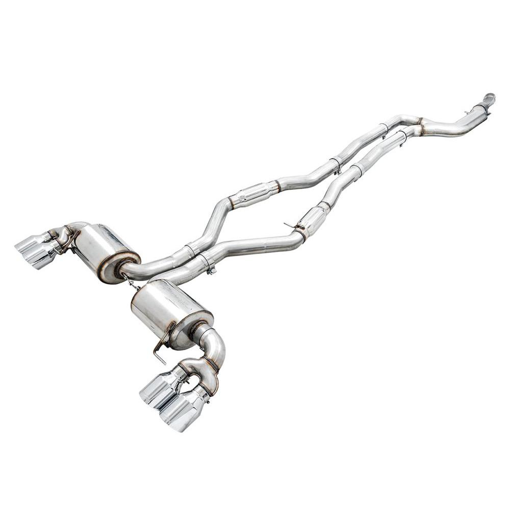 Presenting The Best Sounding Exhausts on the Planet for the BMW G20 M340i: At the intersection of sophistication and aggression lies the Touring Edition Exhaust. A dual 3” T304L stainless steel downpipe-back configuration, the AWE Touring Edition Exhaust is the perfect dose of steel for drivers looking for straight-pipe performance while not sacrificing daily drivability: a deep, sophisticated exhaust note with zero drone at highway speeds. Featuring a stamped stainless steel merge upstream equivalent to dual 3” tubing coming right off of the downpipe. Translation: an impressive 65% increase in flow over stock that future proofs for downpipes of various sizes. Beyond the unique merge, the exhaust splits into dual 3” piping to allow optimal flow throughout the entire exhaust route. Bringing up the rear, the Touring Edition features AWE’s patented drone-canceling solution, 180 Technology®, which targets and omits drone-prone frequencies. What’s this mean for you? You’ll be tuned into a pure, full-bodied B58 soundtrack unlike any other. Equipping a downpipe? Read this (seriously): The Touring Edition Exhaust is available as non-resonated or resonated. We recommend the non-resonated variant for vehicles equipped with the stock downpipe. If your M340i is equipped with an aftermarket downpipe, we recommend going resonated. Have the stock downpipe but plan to go aftermarket later? No worries, you can swap in the resonated midsections with ease via an AWE Resonator Conversion Kit. Hit us here if you're in need of this Conversion Kit.Track Edition ExhaustTip Options: The Touring and Track Edition Exhausts feature statement-making quad 102mm, double-walled, slash-cut tips in either chrome silver or diamond black, complete with a stamped AWE logo. For those who want to keep their OE tips in place, we have configurations that were designed specifically to do that. Just for you.