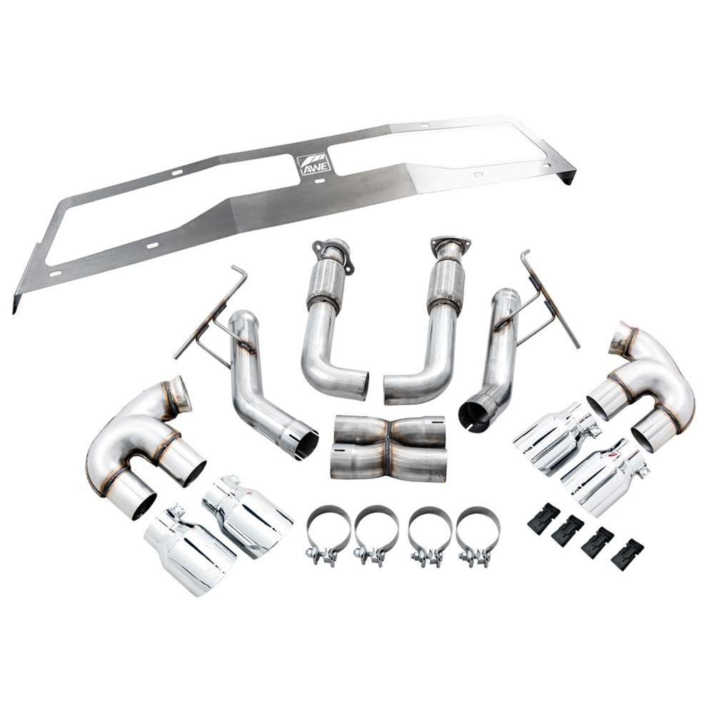 For those who like it raw, rowdy, and light, the AWE Track Edition is for you. The Track Edition shares the same bespoke design and precision engineering as its Touring Edition counterpart, minus AWE’s patented drone-canceling solution, 180 Technology®, providing a weight savings of 39 lbs over stock. In place of the 180 Technology® resonators are Track Edition straight pipe sections. As a result, this version is known to get rowdy during mid-range acceleration and deceleration, as well as becoming more noticeable within the cabin during V4 mode. Due to this reason, AWE Track Edition Exhausts cannot be returned based on sound preference. How do we avoid the Check Engine Light? AWE has engineered an electronic solution to simulate both AFM and NPP valves, resulting in the ECU remaining happy, allowing the C8 Corvette to operate at full stride with no CELs and maximum peace of mind. Each included kit includes two pairs -- one for AFM, and the other for NPP. If your C8 does not have NPP, only one pair will be used. Purely plug-in and rip! And if one day you decide that the Track Edition is too loud for you, we made it easy to convert between Track and Touring Edition configurations with our convenient Conversion Kits. Easy! There's a reason AWE is the leader in C8 exhausts, and you're looking at it!