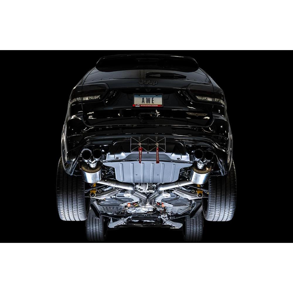 Tones worthy of tremors. Presenting The Best Sounding Exhausts on the Planet for the Jeep Grand Cherokee SRT/Trackhawk:The Touring Edition is a full 3” straight-through stainless steel Catback configuration capable of delivering optimal power while remaining drone-free throughout the entire rev range. Featuring a precision-engineered H-pipe and AWE’s patented drone-canceling solution, 180 Technology®, the Touring Edition delivers deep, rich exhaust notes that coax anyone in your lane to move out of the way.Conversion Kits: AWE made it easy to convert between Track and Touring Editions if you decide at a later date to change your volume.