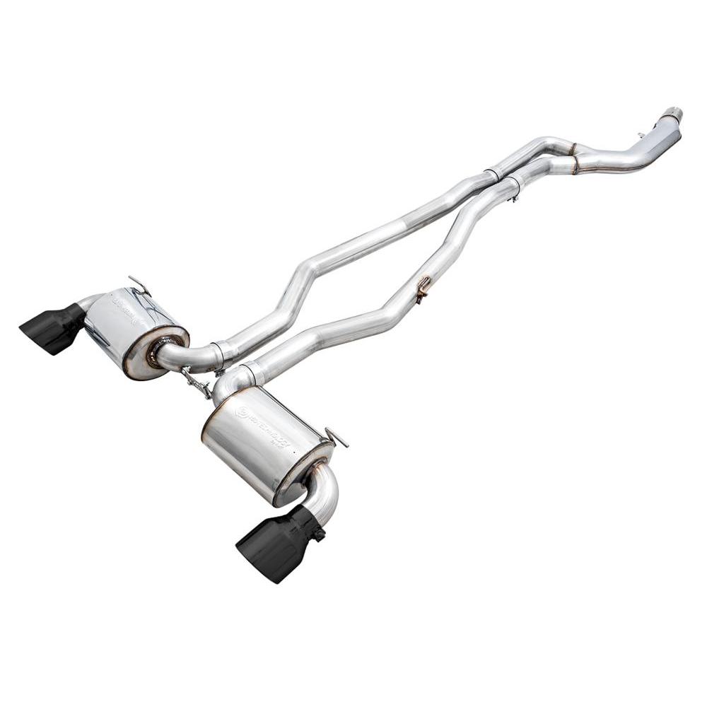 A dual 3” T304L stainless steel downpipe-back configuration, the AWE Touring Edition Exhaust is the perfect dose of steel for drivers looking for straight-pipe performance while not sacrificing daily drivability: a deep, sophisticated exhaust note with zero drone at highway speeds. Featuring a stamped stainless steel merge upstream equivalent to dual 3” tubing coming right off of the downpipe. Translation: an impressive 65% increase in flow over stock that future proofs for downpipes of various sizes. Beyond the unique merge, the exhaust splits into dual 3” piping to allow optimal flow throughout the entire exhaust route. Bringing up the rear, the Touring Edition features AWE’s patented drone-canceling solution, 180 Technology®, which targets and omits drone-prone frequencies. What’s this mean for you? You’ll be tuned into a pure, full-bodied B58 soundtrack unlike any other. Equipping a downpipe? Read this (seriously): If you're equipping an aftermarket downpipe with an outlet larger than 80mm, we've made it easy for you. Removal of the included inlet adapter will be required, which will then leave you with the 3.5" diameter inlet of the stamped stainless steel merge. A simple custom adapter will be required to bridge the gap between your aftermarket downpipe and the 3.5" diameter inlet of stamped stainless steel merge. We've future-proofed your exhaust for big power with no less than 3.5" of high-flow fury. The Touring Edition Exhaust is available as non-resonated or resonated. We recommend the non-resonated variant for vehicles equipped with the stock downpipe. If your Supra is equipped with an aftermarket downpipe, we recommend going resonated. Have the stock downpipe but planning to go aftermarket later? No worries, you can swap in the resonated mid sections with ease via an AWE Resonator Conversion Kit. Comes complete with 5”, double-walled, slash-cut tips in either chrome silver or diamond black, with a stamped AWE logo.