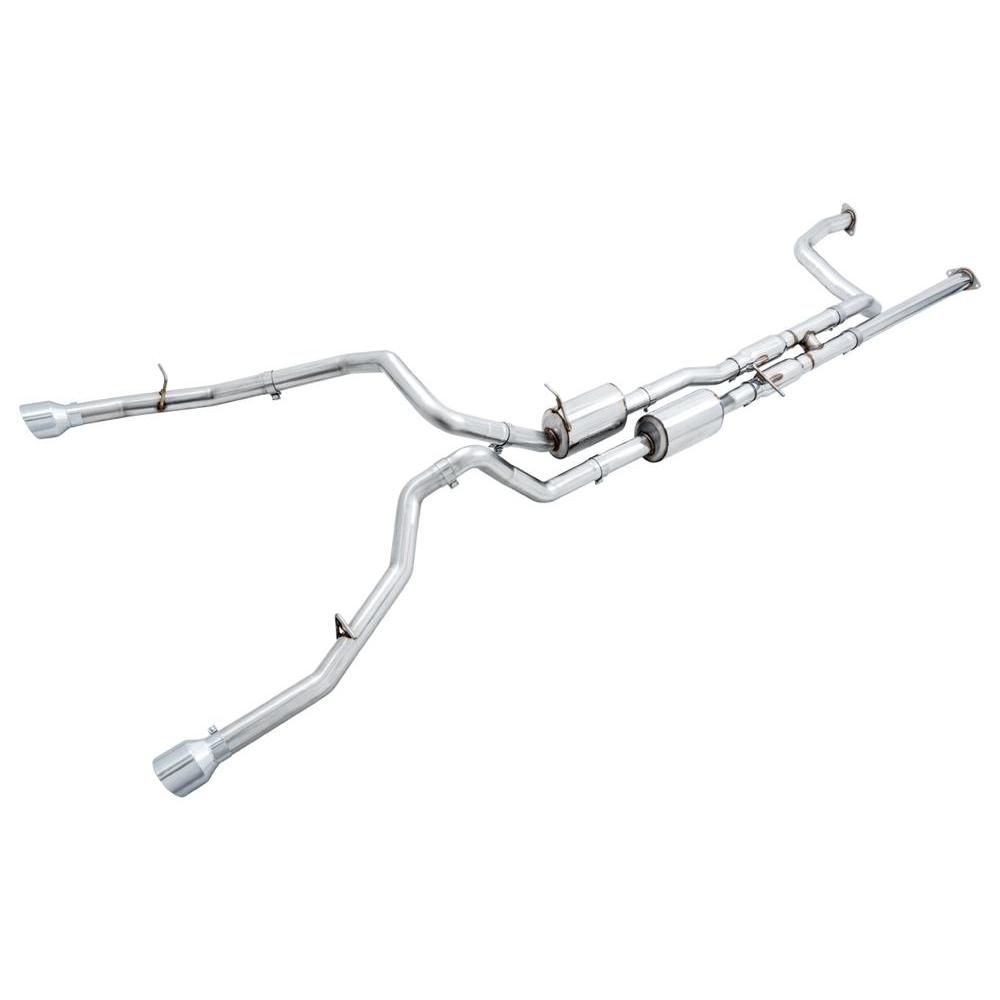 The 0FG is a dual 3” T304L stainless steel Cat Back configuration featuring a bespoke resonated H-pipe and AWE’s patented drone-canceling 180 Technology®. Together, combined with precision fitment, class-leading rigidity, and signature 5” slash-cut tips, you're looking at the Best Sounding Exhaust on the Planet for the RAM TRX. American-sourced T304L stainless steel with a wall thickness of .065” runs smoothly from front to back, connecting right after the factory emissions equipment. A resonated H-pipe tailored specifically for the 6.2L-packed TRX is met shortly after to provide an aggressive and rich muscle tone with minimal rasp. You're looking at the Chrome Silver tips version of the exhaust, featuring aggressive 5”, double-walled slash-cut tips, and stamped AWE logos to let everyone know what team you're on. The TRX system by AWE is one of the most significant upgrades available for your TRX. Let's rumble.