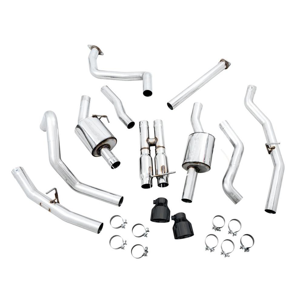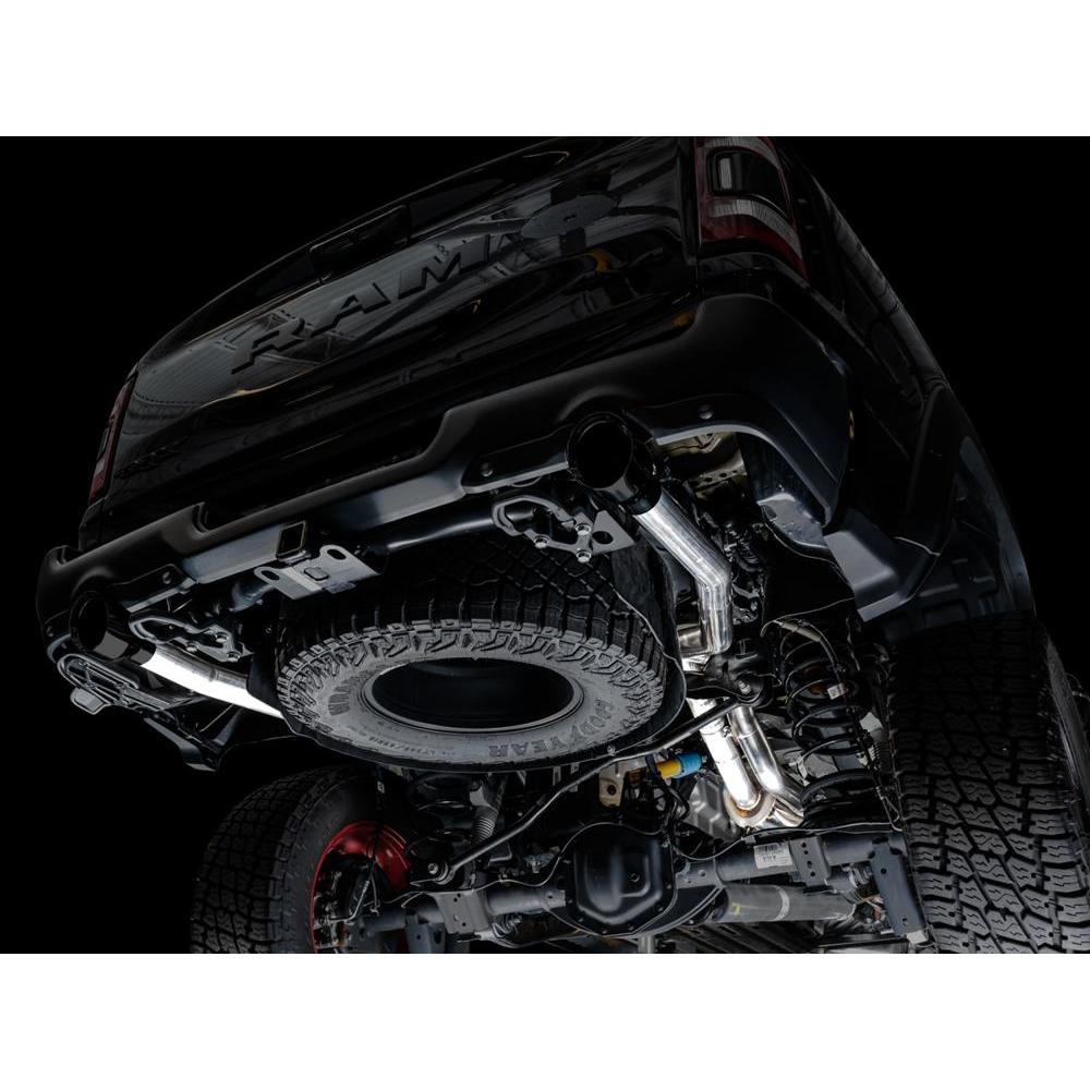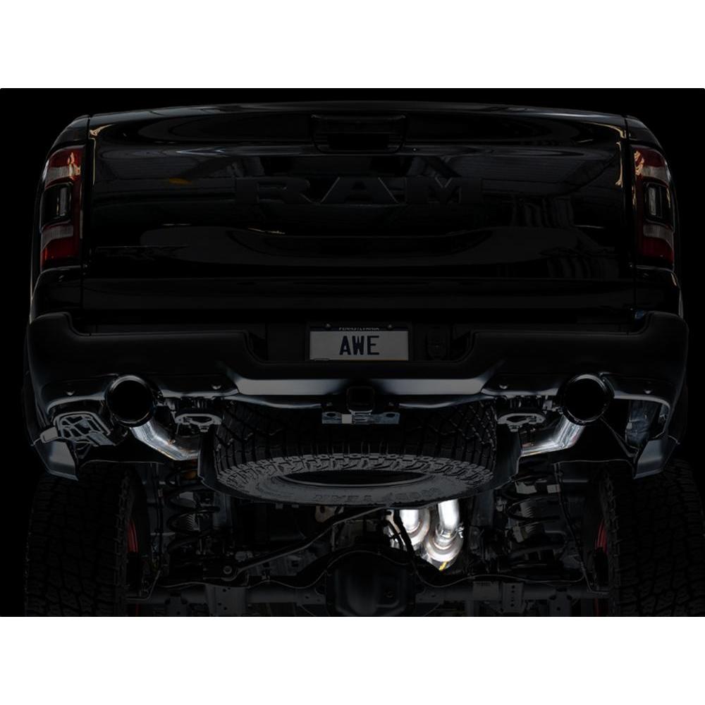 The 0FG is a dual 3” T304L stainless steel Cat Back configuration featuring a bespoke resonated H-pipe and AWE’s patented drone-canceling 180 Technology®. Together, combined with precision fitment, class-leading rigidity, and signature 5” slash-cut tips, you're looking at the Best Sounding Exhaust on the Planet for the RAM TRX. American-sourced T304L stainless steel with a wall thickness of .065” runs smoothly from front to back, connecting right after the factory emissions equipment. A resonated H-pipe tailored specifically for the 6.2L-packed TRX is met shortly after to provide an aggressive and rich muscle tone with minimal rasp. You're looking at the Diamond Black tips version of the exhaust, featuring aggressive 5”, double-walled slash-cut tips, and stamped AWE logos to let everyone know what team you're on. The TRX system by AWE is one of the most significant upgrades available for your TRX. Let's rumble.