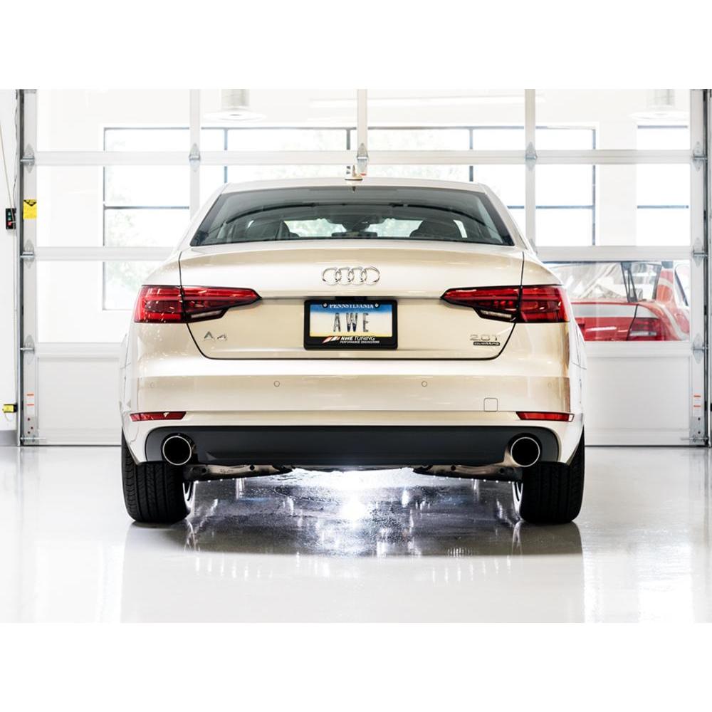 Valve closed for sophistication, valve open for aggression. All at the touch of the SwitchPath™ Remote button. Tone at your fingertips. Equipped with a 3” resonated downpipe, a 3” valved straight section on the driver’s side and 2.5” piping with a muffler on the opposing passenger’s side, the AWE SwitchPath™ Exhaust is capable of changing soundtracks instantly with the touch of the SwitchPath™ Remote button at any time. Drone-free mood control accompanied by addicting, crackling gear shifts and impressive performance. Constant, all-around satisfaction. Note: you may notice a slight valve rattle upon cold start as you would with many factory valved systems. This sound will go away within a few minutes and you will be off to the races in no time.Tips are are 102mm, slash-cut, include the AWE logo, and are double walled to ensure a mirror finish even under hard usage. All tips are individually adjustable, allowing depth into the bumper to be set according to personal taste.