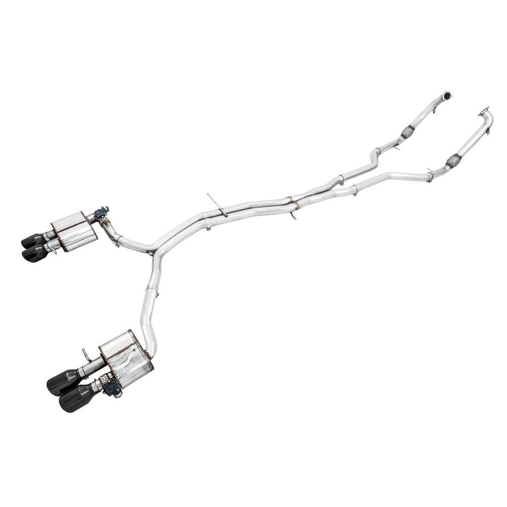 Instead, the Track Edition comes with non-resonated downpipes and straight pipe sections. The precision-engineered x-pipe and Sportback-specific mid merge are the only filters. This version is known to get rowdy and may be too much for many. For that reason, this version cannot be returned due to sound preference. Prepare yourself. SwitchPath™ Exhaust The SwitchPath™ valved solution is for those who want complete control of their S5 Sportback’s volume and tone, at their fingertips. The SwitchPath™ Exhaust comes complete with non-resonated downpipes, a precision-engineered x-pipe, Sportback-specific mid merge, and two valved muffler sections which can be controlled via the SwitchPath™ Remote. Sneaking out in the morning? Keep the valve closed. Ready to rumble? Open the valve and let them know you're coming. Note: we highly recommend and encourage pairing the SwitchPath™ Exhaust with the SwitchPath™ Remote versus using the factory operation for the best SwitchPath™ experience. The Mid Merge The Sportback introduced new in-cabin acoustic behavior and undercar packaging that wasn’t found on the other members of the B9 trio. In order to produce a signature AWE tone out of the 3.0T-powered S5 Sportback while engineering around the unique undercarriage, the mid merge was born. Deployment of the mid merge allows the Sportback configurations to exist without any of resonators, thus ensuring the full, sophisticated howl of the 3.0T engine will never change over time. Tip Options All tip options include the AWE logo, and double-walling to ensure a mirror finish even under hard usage. All tips are individually adjustable, allowing depth into the bumper to be set according to personal taste. 102mm or 90mm Diamond Black tips 102mm or 90mm Chrome Silver tips What’s in the box? Complete SwitchPath™, Touring or Track Edition Edition Exhaust, four double-walled tips in chosen color and size, non-resonated downpipes, installation instructions, and required hardware.