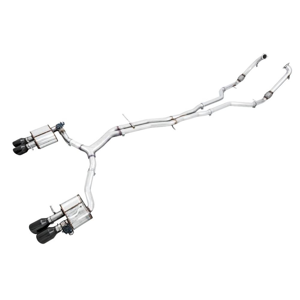 Instead, the Track Edition comes with non-resonated downpipes and straight pipe sections. The precision-engineered x-pipe and Sportback-specific mid merge are the only filters. This version is known to get rowdy and may be too much for many. For that reason, this version cannot be returned due to sound preference. Prepare yourself. SwitchPath™ Exhaust The SwitchPath™ valved solution is for those who want complete control of their S5 Sportback’s volume and tone, at their fingertips. The SwitchPath™ Exhaust comes complete with non-resonated downpipes, a precision-engineered x-pipe, Sportback-specific mid merge, and two valved muffler sections which can be controlled via the SwitchPath™ Remote. Sneaking out in the morning? Keep the valve closed. Ready to rumble? Open the valve and let them know you're coming. Note: we highly recommend and encourage pairing the SwitchPath™ Exhaust with the SwitchPath™ Remote versus using the factory operation for the best SwitchPath™ experience. The Mid Merge The Sportback introduced new in-cabin acoustic behavior and undercar packaging that wasn’t found on the other members of the B9 trio. In order to produce a signature AWE tone out of the 3.0T-powered S5 Sportback while engineering around the unique undercarriage, the mid merge was born. Deployment of the mid merge allows the Sportback configurations to exist without any of resonators, thus ensuring the full, sophisticated howl of the 3.0T engine will never change over time. Tip Options All tip options include the AWE logo, and double-walling to ensure a mirror finish even under hard usage. All tips are individually adjustable, allowing depth into the bumper to be set according to personal taste. 102mm or 90mm Diamond Black tips 102mm or 90mm Chrome Silver tips What’s in the box? Complete SwitchPath™, Touring or Track Edition Edition Exhaust, four double-walled tips in chosen color and size, non-resonated downpipes, installation instructions, and required hardware..