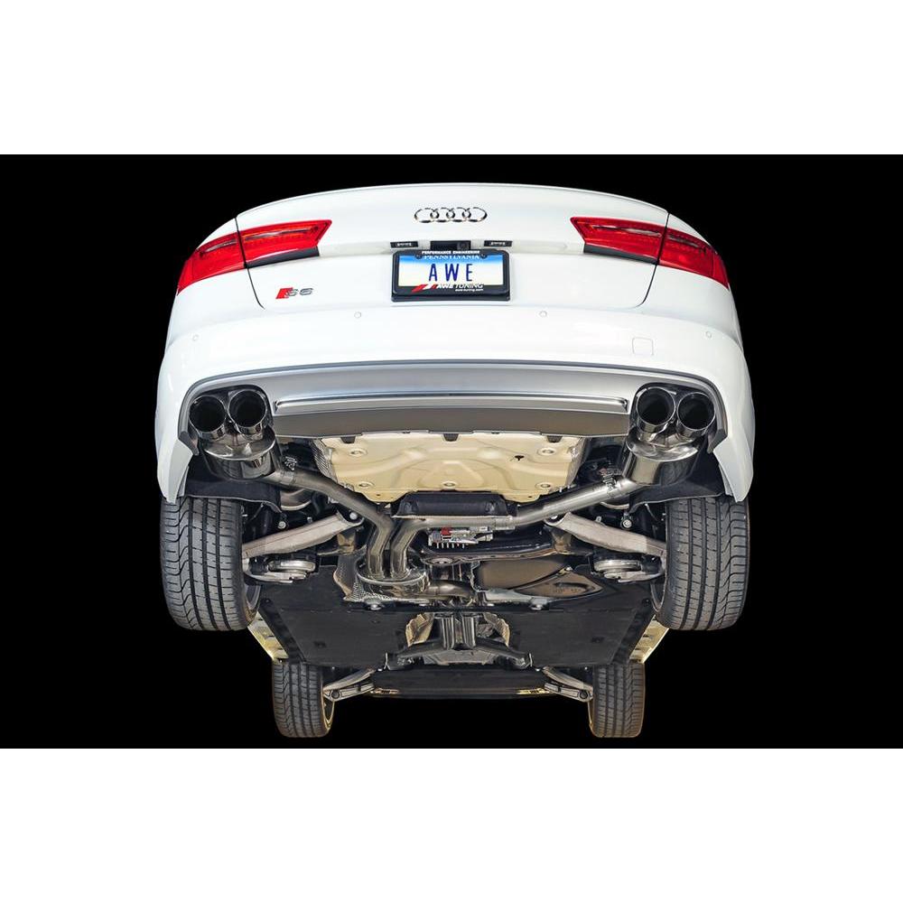 AWE Research and Development has yielded an exhaust that is remarkably civil while idling/part throttle cruising, but unleashed at full throttle produces what some have called a “war-cry wail.” The Touring Edition Exhaust features our proprietary sound canceling technology, 180 Technology®, providing the perfect tone, minus the drone. Performance driven sophistication: a direct bolt-on, straight-through design, delivering a smooth soundtrack throughout the range. All tip options include the AWE logo, and double walling to ensure a mirror finish even under hard usage. All tips are individually adjustable, allowing depth into the bumper to be set according to personal taste.