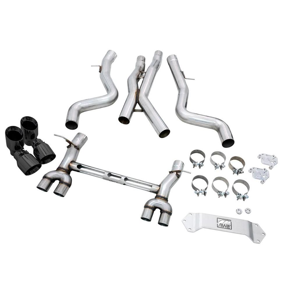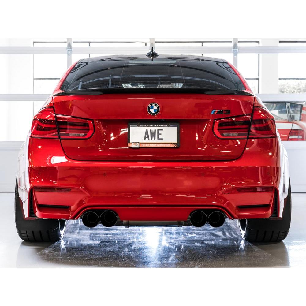 Unified design for OPF euro and non-euro spec cars, 50-state legal Cat Back design, precision-engineered X-pipe to unlock a clean S55 tone, retained M-Sport button functionality, 3” CNC mandrel-bent configuration, max gains of 12 hp and 16 lb-ft of torque at the wheels and signature AWE 102mm double-walled, slash-cut tips in Chrome Silver or Diamond Black. Throw in a No Check Engine Light Guarantee, Perfect Fitment Guarantee and Lifetime Warranty and you've got the only real option for your S55. Minimal bends, maximum flow, and push-button attitude. The SwitchPath™ Exhaust is a true Cat Back configuration comprised of 3-inch and 2.5-inch U.S.-sourced T304L stainless steel, a precision x-pipe, and a valved SwitchPath™ muffler tuned specifically for the S55. Beginning after the secondary catalysts, the precision X-pipe immediately helps smooth the S55 of its infamous rasp, allowing the tone to be further refined by the bespoke muffler in the rear. The closed valve experience: When the valves are closed, the SwitchPath™ Exhaust produces a refined, aggressive howl while remaining full-bodied and powerful – no congested, metallic sounds here when on the throttle. At cruising speeds, interior acoustics are close to stock. AWE SwitchPath™ tech also responds perfectly to the many transmission settings and shift points in DCT vehicles.