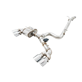 Smooth bends, tight packaging, and two attitudes. The SwitchPath™ Exhaust is comprised of handcrafted 3-inch and 2.5-inch U.S.-sourced T304L stainless steel with a valved passenger-side tip outlet. SwitchPath™ retains the factory valve behavior and obeys the Golf R’s ECU commands based on throttle input, engine speed, and Drive Select. Sneaking out in the morning or creeping through town? Close the valve. Ready to rip? Toggle into Dynamic and your Golf R will sing a signature AWE tune with enhanced crackles that will provoke a firm grin. And we made it easy to convert between SwitchPath™ and Track Edition if you decide at a later date to change your volume with our Conversion Kit. Easy. AWE SwitchPath™ comes standard with 102mm double-walled, slash-cut tips in your choice of Chrome Silver or Diamond Black, complete with stamped AWE logo. If you're interested in push button mood control beyond what the factory wanted for you... you're in luck. The AWE SwitchPath™ Remote and accompanying control box (both sold separately) overrides the factory valving to allow the exhaust valves, whether it be on the AWE SwitchPath™ Exhaust or the stock exhaust, to be opened or closed manually via the SwitchPath™ Remote. Please note, the AWE SwitchPath™ Remote overrides the stock valve control, meaning the exhaust must be opened and closed with the remote as desired.An exhaust for the hottest of VW’s hatchbacks - with options to suit every taste, and unmatched quality, fitment, performance and tone.
