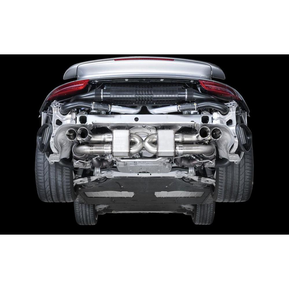 Behind the finished product are hundreds of hours of prototyping, engineering, research, testing and daily usage evaluation; outputting an exhaust system that is equal parts sophisticated and aggressive. Producing an exhaust system that is both aggressive at full throttle yet civil enough for bluetooth calls is no small endeavor. Using the AWE 200 Cell HJS HD High Flow Cat Sections, AWE sound engineers carefully studied the tones of the multiple prototype 991 TT systems at various RPMs, and meticulously engineered a bespoke 991 TT solution (as opposed to a repurposed 997.2TT system) to combat frequencies that are not appropriate for a supercar of this caliber – retaining and building upon only the perfect notes. All while producing an impressive 29+ horsepower at the crank along with the AWE No CEL Guarantee.Using 3.0" diameter T304 stainless steel tubing and an H-pipe design, the AWE muffler section routes exhaust gases through two proprietary and handcrafted mufflers to create the AWE signature sound. This system is available with either Diamond Black quad tips, Chrome Silver quad tips, or a system that retains the factory tips. This particular product is the Chrome Silver tip version. This is the only Porsche 991.1 Turbo and Turbo S Exhaust System with enough craftsmanship to bear the AWE name. Please note that due to the use of high flow catalytic converters this exhaust is legal for racing use only.