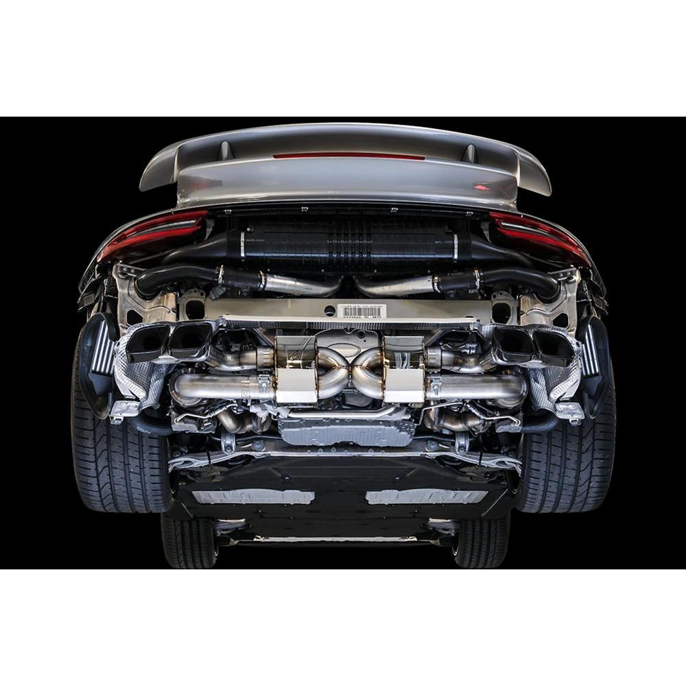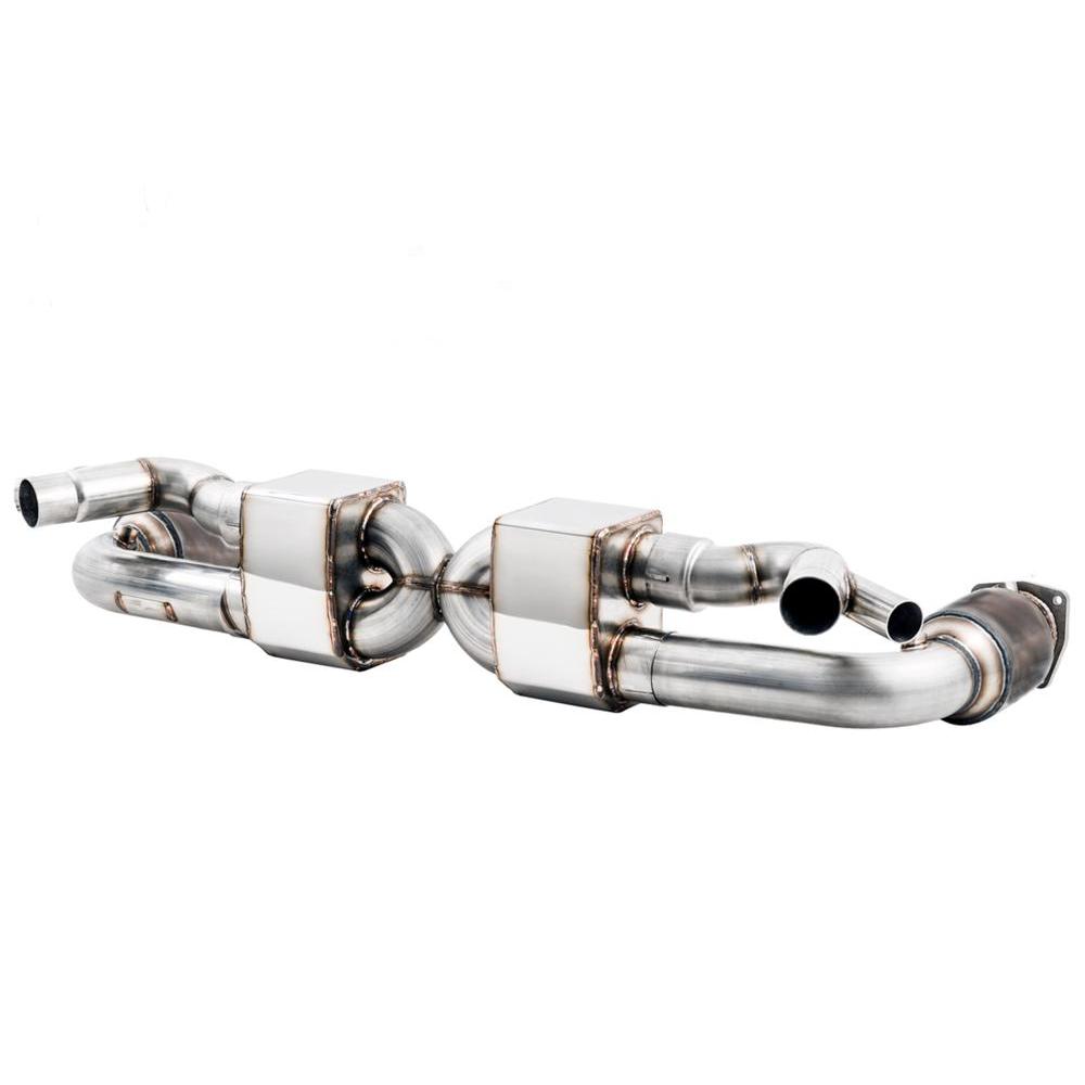 Producing an exhaust system that is both aggressive at full throttle yet civil enough for Bluetooth calls is no small endeavor. Using the AWE 200 Cell HJS HD high-flow catalysts, AWE sound engineers carefully studied the tones of the multiple prototype 991 TT systems at various RPMs, and meticulously engineered a bespoke 991 TT solution (as opposed to a repurposed 997.2TT system) to combat frequencies that are not appropriate for a supercar of this caliber – retaining and building upon only the perfect notes. All while producing an impressive 29+ horsepower at the crank along with the AWE No CEL Guarantee.Using 3.0" diameter T304 stainless steel tubing and an H-pipe design, the AWE muffler section routes exhaust gases through two proprietary and handcrafted mufflers to create the AWE signature sound. The exhaust is available with AWE Diamond Black tips, Chrome Silver tips, or OE tips to retain the factory look. This version reuses the OE tips, for that "sleeper" look, if that's possible with your 991.2. This is the only 991.2 Turbo and Turbo S exhaust that’s fit for the AWE badge.Important note: Please note that due to the use of high flow catalytic converters this exhaust is legal for racing use only.