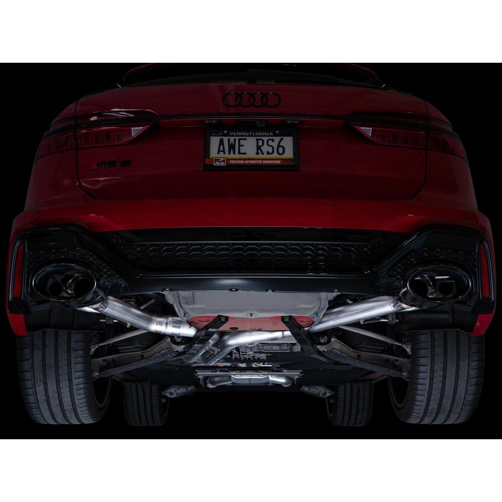 No drone, minimal bends, maximum flow, and push-button attitude. The SwitchPath™ Exhaust comprises 3-inch U.S.-sourced T304L stainless steel featuring a bespoke, straight-through center resonator featuring AWE’s proprietary drone-canceling solution, 180 Technology®, tuned specifically for the 4.0TT.
