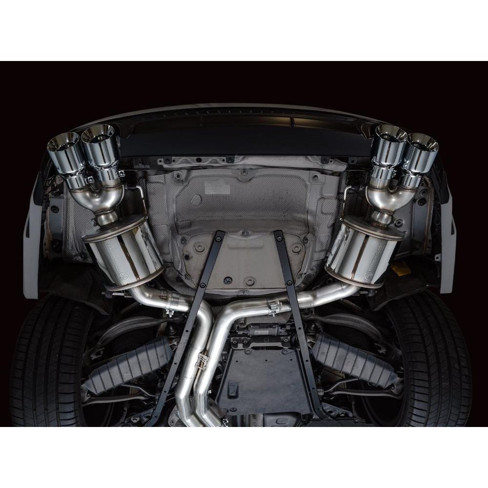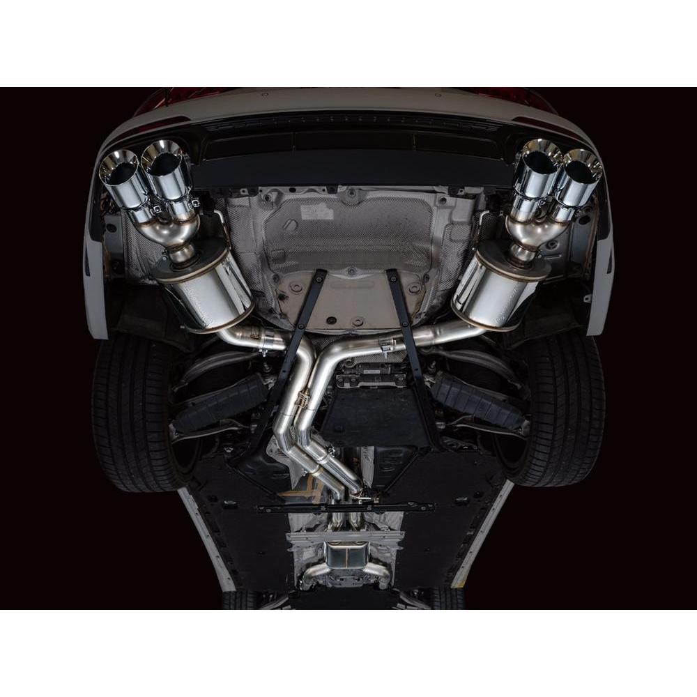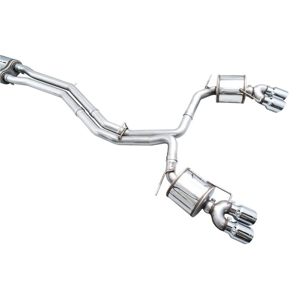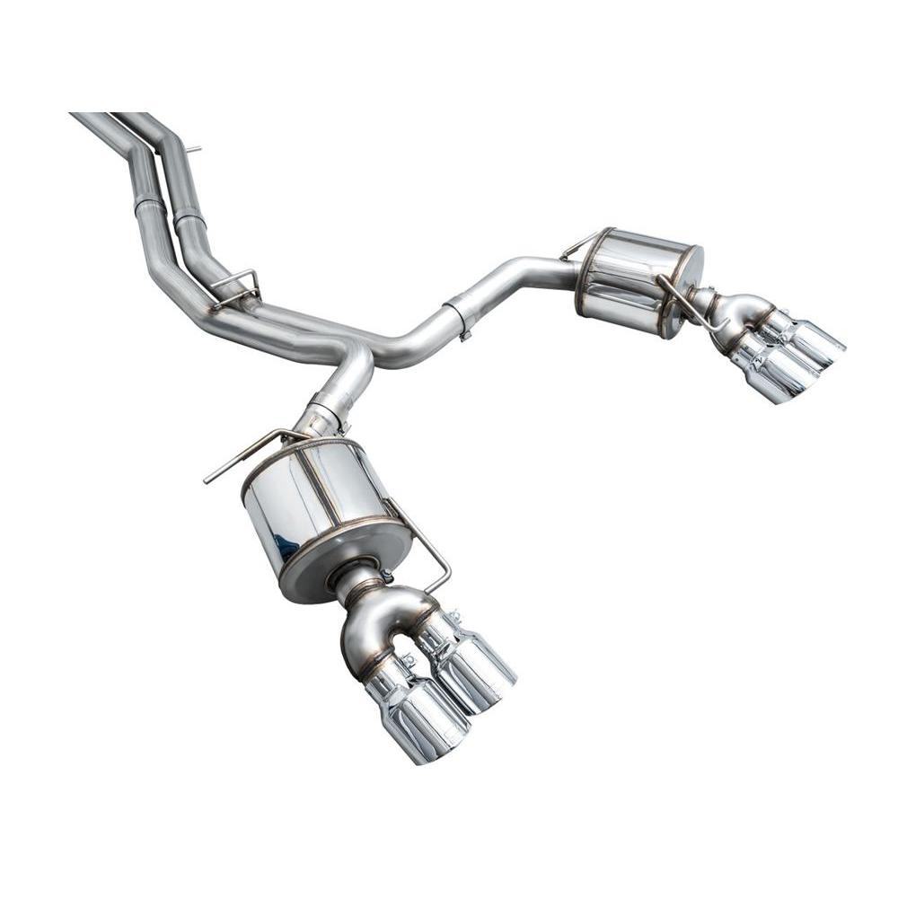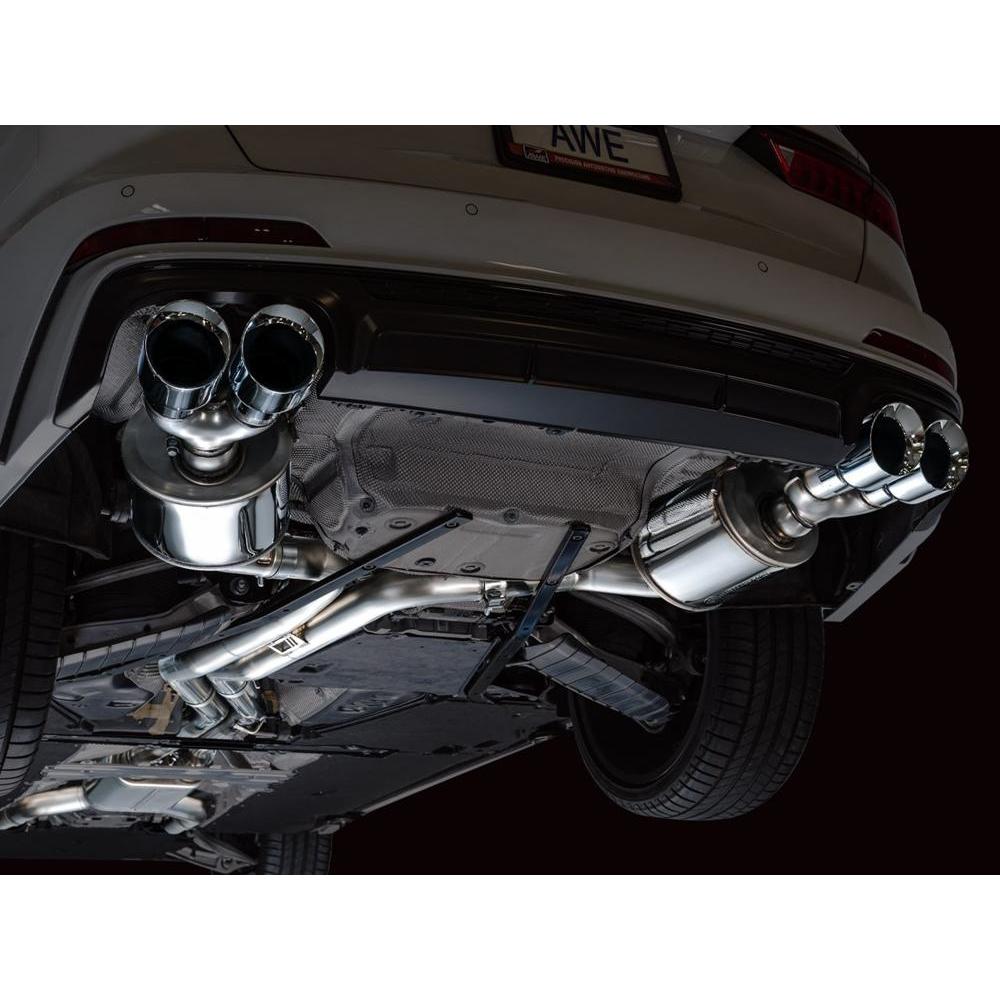 A true dual 3” T304L stainless steel configuration featuring a bespoke, straight-through center resonator specific for the 2.9TT, topped off with AWE’s proprietary drone-canceling solution, 180 Technology®, in the rear. The result is a menacing, aggressive soundtrack throughout the range with a drone-free cabin experience under cruising conditions. This exhaust resides at the intersection of exotic aggression and highway comfort for the S6/S7. Quad 4.5" double-walled, slash-cut tips in your choice of chrome silver or diamond black. AWE No CEL Guarantee, Perfect Fitment Guarantee, and Lifetime Warranty come standard.