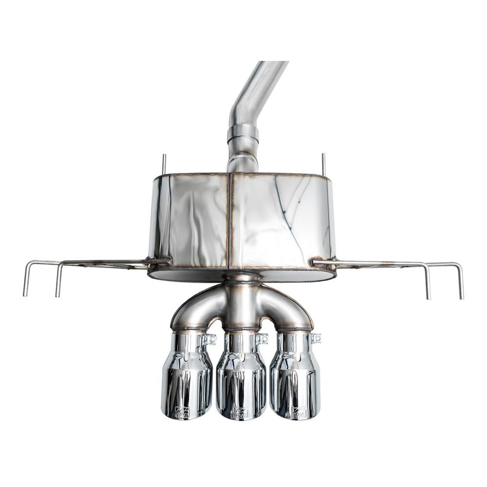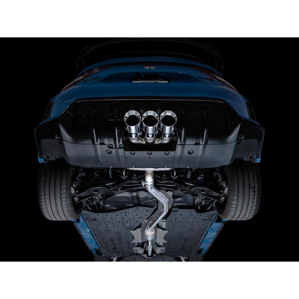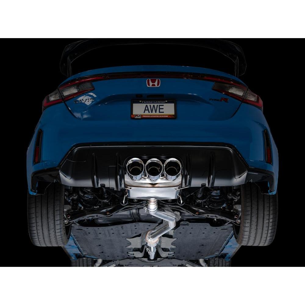The Touring Edition include a full 3” frontpipe that is designed with a unique flange and gasket to ensure the full diameter from inlet to outlet. This frontpipe is integrated into the design of the exhausts. AWE exhausts are not designed to mate with other aftermarket frontpipes. At the intersection of sophistication and aggression lies the Touring Edition Exhaust. A 3” T304L stainless steel downpipe-back configuration, the Touring Edition Exhaust is the perfect dose of steel for drivers looking for straight-pipe performance, a deep, sophisticated exhaust note, and zero drone at highway speeds. Featuring an integrated front pipe, robust midpipe resonator, thick-walled T304L stainless steel, and an iteration of AWE’s 180 Technology® bespoke for the FL5 in the rear, the Touring Edition is the do-it-all configuration for everyday drivers. Thanks to AWE’s patented drone-canceling 180 Technology®, the Touring Edition keeps all of the commotion to the rear of the vehicle where it belongs, and destroys drone-prone frequencies that would otherwise resonate within the cabin at highways speeds – all packaged perfectly to fit within the undertray of the bumper with plenty of clearance. The Touring Edition, and the 180 Technology® within it, were both developed for use with and without an aftermarket catted downpipe. As exhaust gases exit the K20 engine and flow into an AWE 180 Technology equipped resonator, they pass through strategically located ports, and into reflection chambers. Sound waves, carried by these exhaust gasses, bounce off the walls of the reflection chambers. By controlling the size and location of the ports and the chambers, we also control when the sound waves exit the chambers. The specific timing of when the reflected sound waves rejoin the main exhaust flow creates a one-hundred-and-eighty-degree out-of-phase sound wave that cancels out problematic frequencies. All of this with a straight-through design- in other words, all the power, none of the drone.