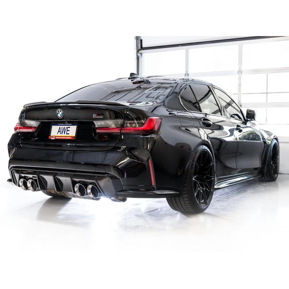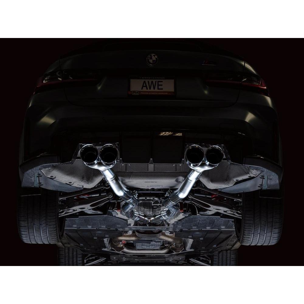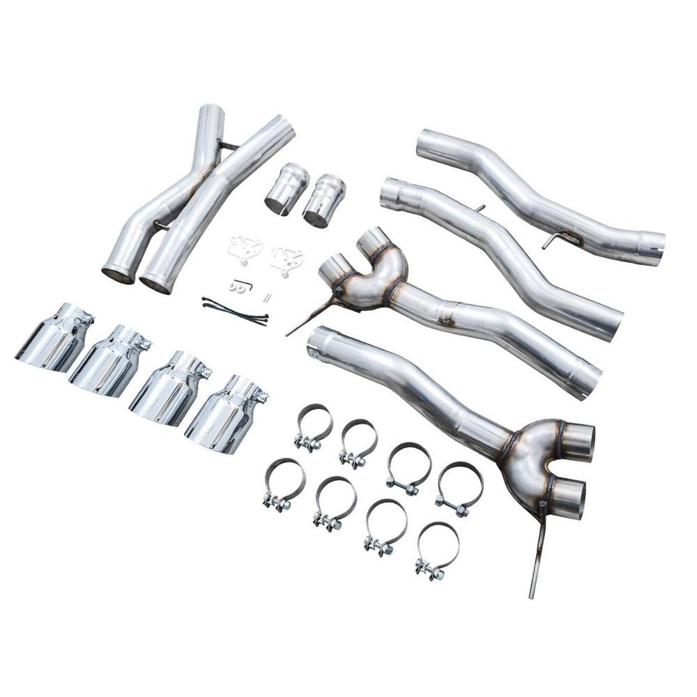 AWE’s Track Edition takes all of the precision engineering and performance of its SwitchPath™ counterpart, minus the valved muffler in the rear. The result is a constant “valve open” mode, at an affordable price with additional weight savings. If you’re craving rich and rowdy tones at all times, and a hefty 22 lb weight savings (with AWE mid-pipes), this is your dose of steel. The Track Edition Exhaust, also 50 state legal like its SwitchPath™ sibling, comes complete with AWE valve simulators to accommodate your factory exhaust valve motors. Happy ECU, happy life. And when it comes to showing off the party out back, the system comes with quad 4.5” double-walled, slash-cut tips available in chrome silver or diamond black. The exhaust features inlet adapters to mate to the factory mid section. When pairing AWE Mid-Pipes to the SwitchPath™ or Track Edition Exhausts, the aforementioned adapters are not needed. Due to varying cut points, AWE Exhausts are not guaranteed to mate with another manufacturer’s mid pipes. Note: This version is known to get rowdy, and may be too much for many. For that reason, this particular version cannot be returned due to sound preference. Prepare yourself (Sport+ mode can be pretty raucous)!