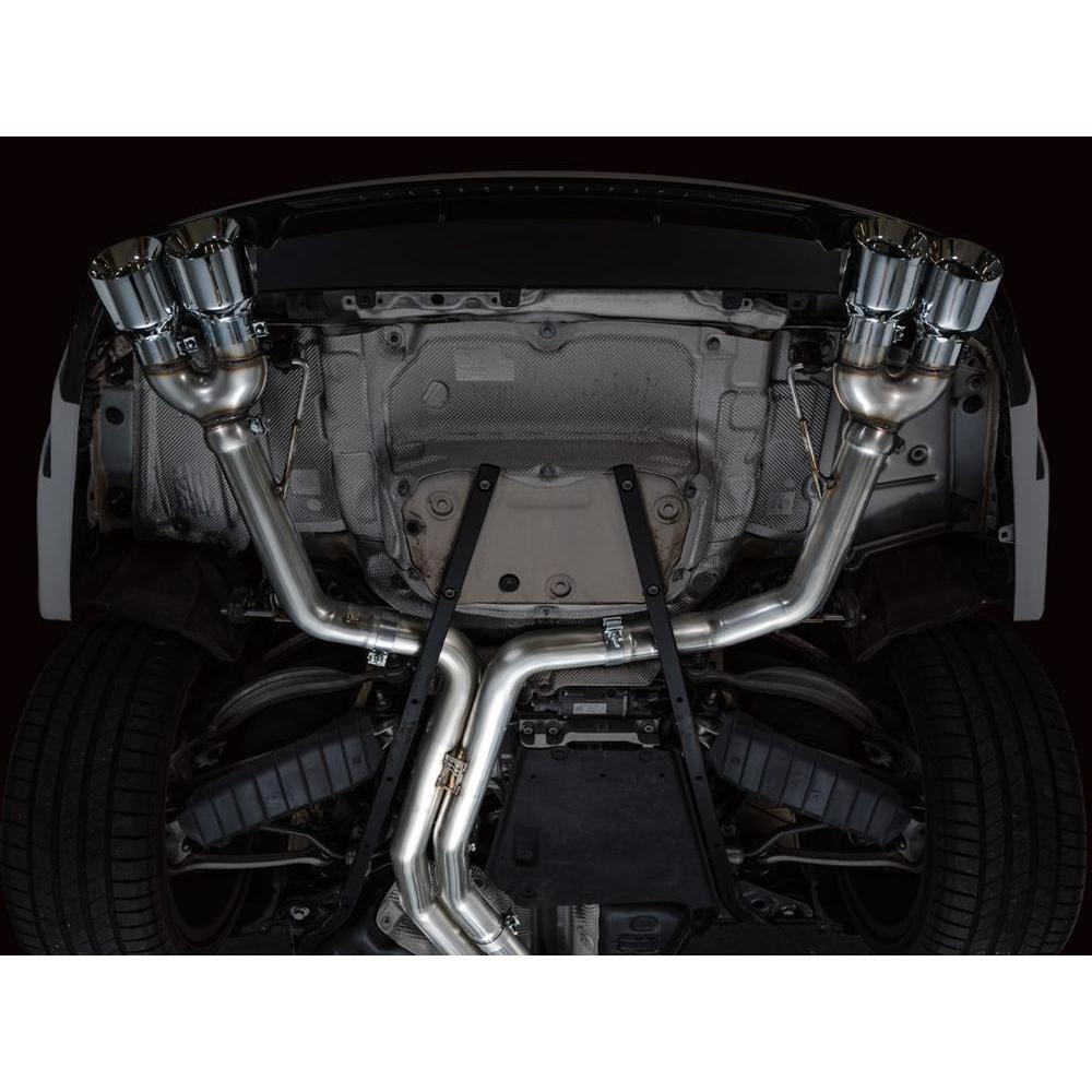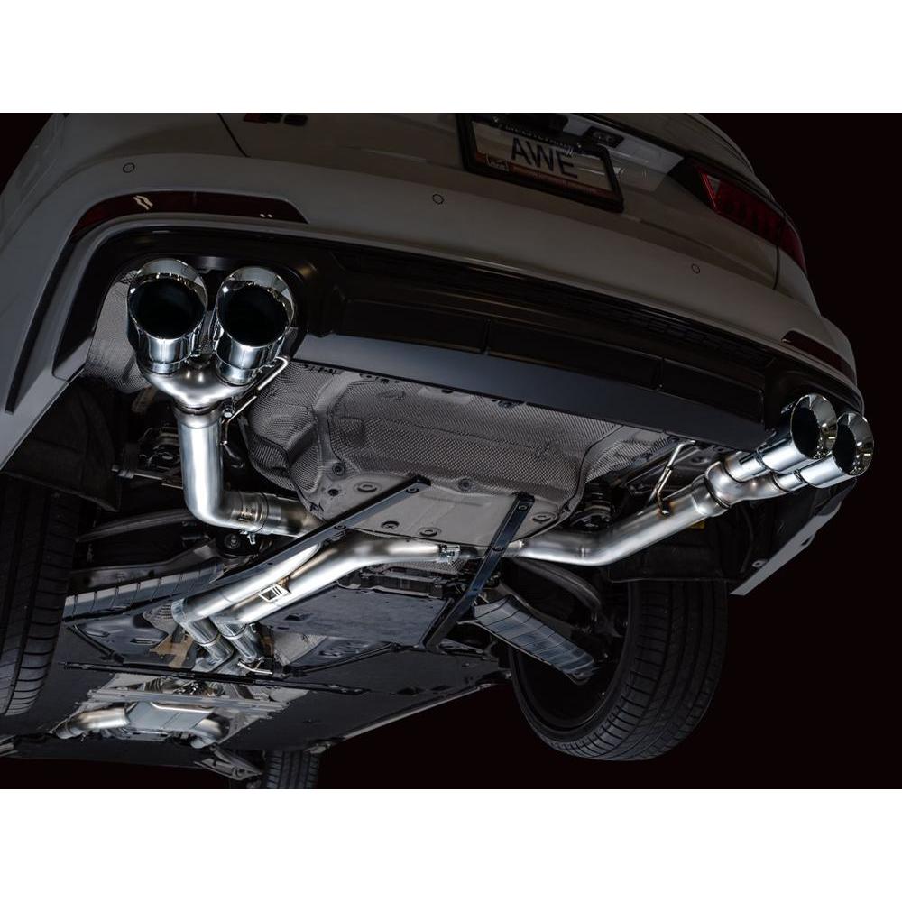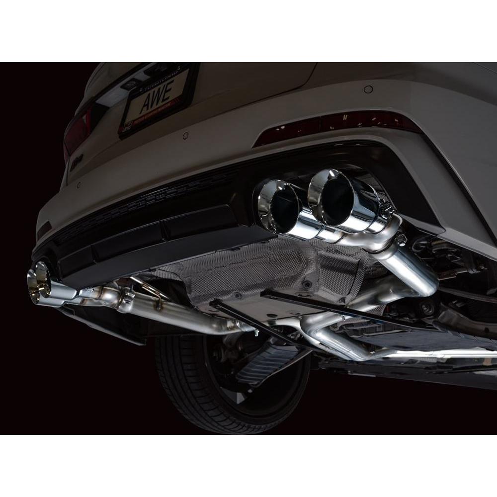 If raw and rowdy are your speed, the Track Edition is your dose of steel. A true dual 3” T304L stainless steel configuration featuring a bespoke, straight-through center resonator specific for the 2.9TT, and Track Edition straight sections in the rear. Quad 4.5" double-walled, slash-cut tips in your choice of chrome silver or diamond black. AWE No CEL Guarantee, Perfect Fitment Guarantee, and Lifetime Warranty come standard. Please note: this version is known to get rowdy in the mid-range and during cruising speeds, and may be too much for many. For that reason, this particular versions cannot be returned due to sound preference. Prepare yourself.