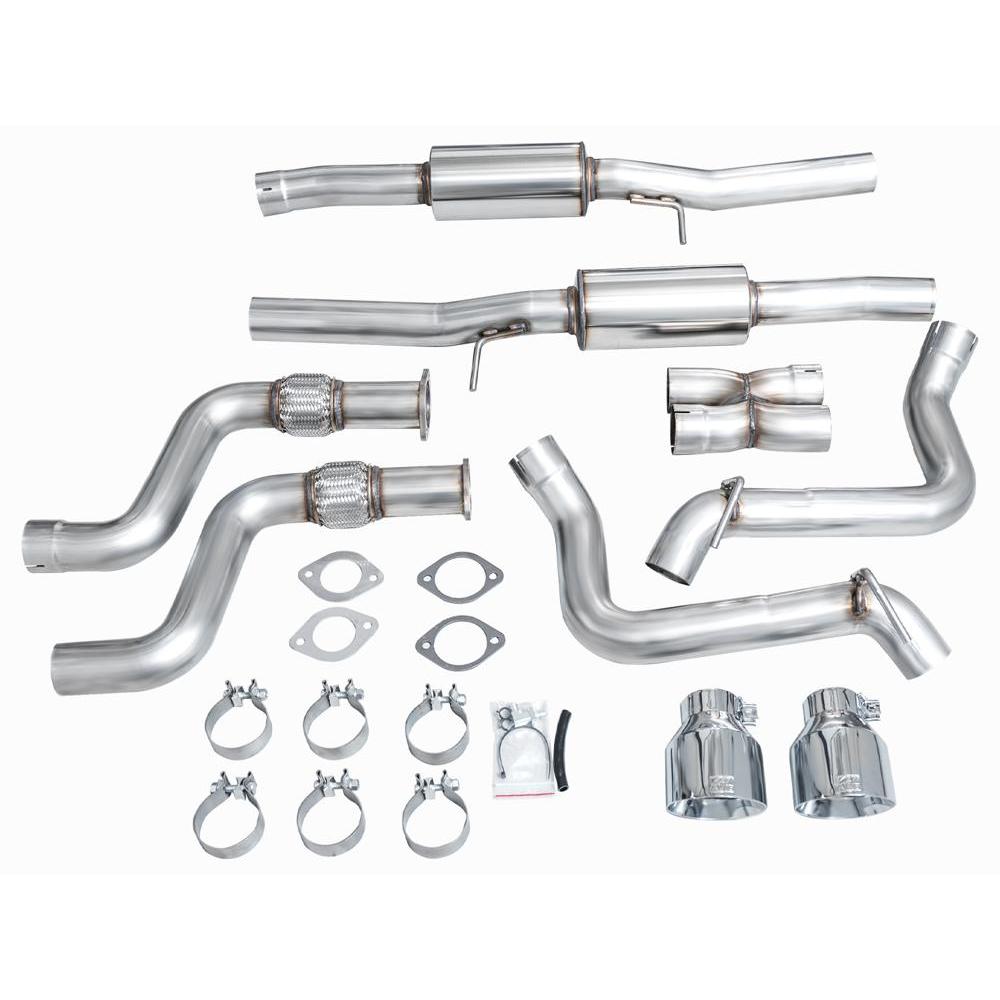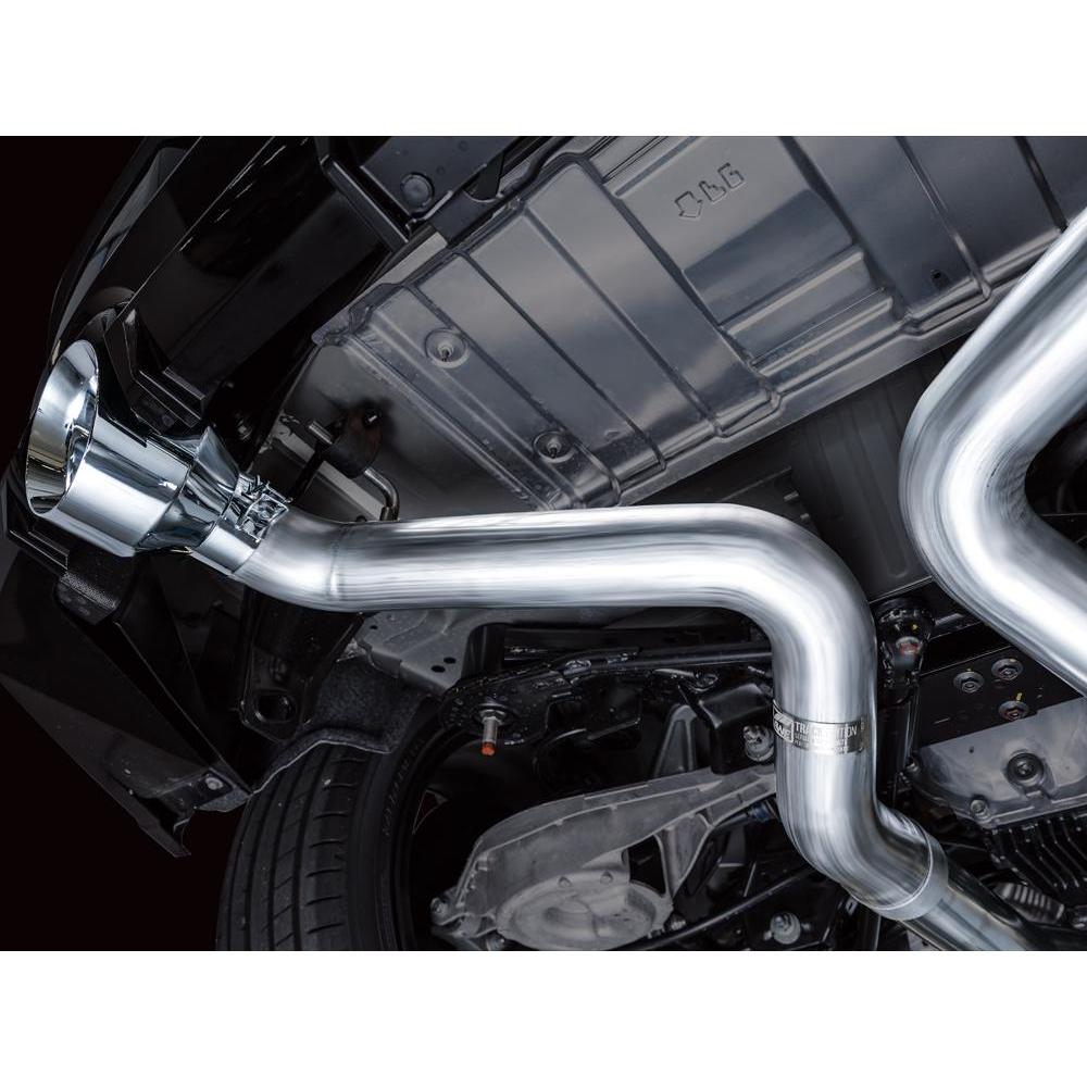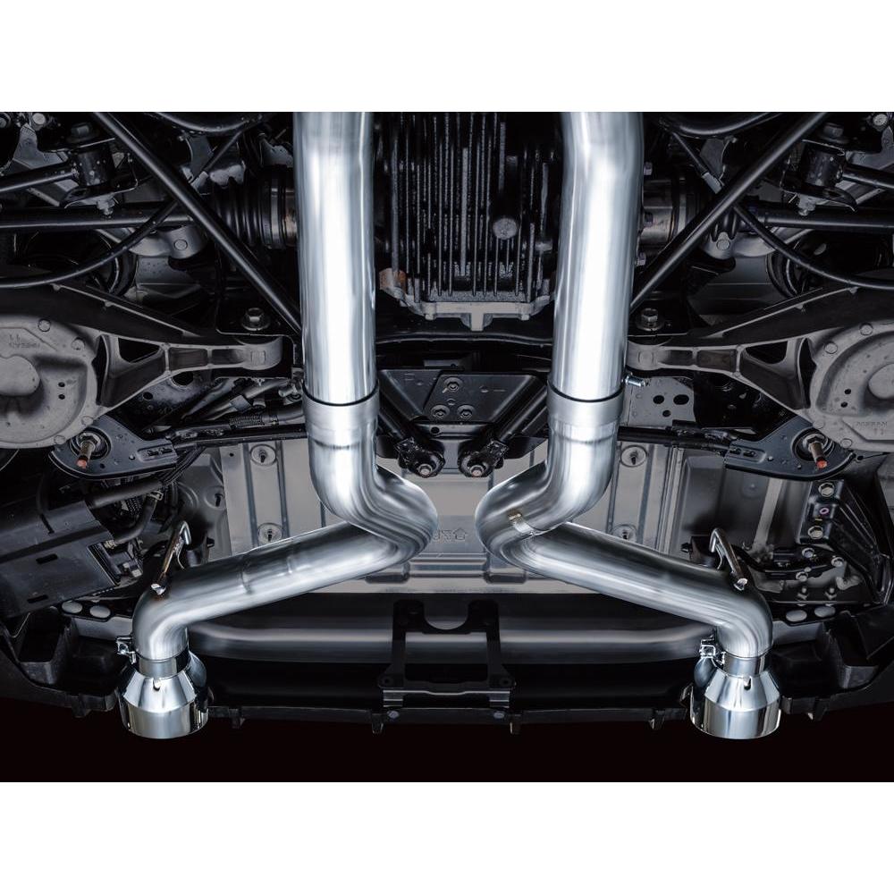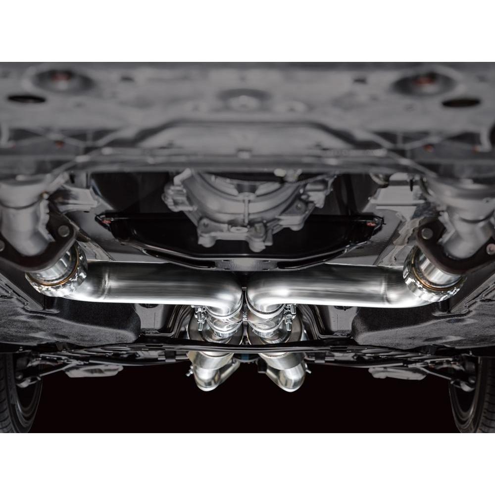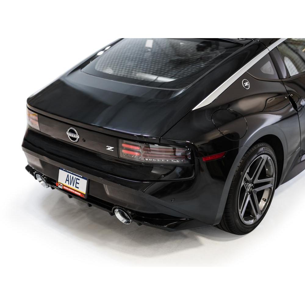 Dual full 3" catback configuration tailored for the 3.0TT Z. Featuring a symmetric X-pipe and robust resonators built for big boost. Dyno-proven power gains of +6 hp and +14 lb-ft of torque at the wheels (factory downpipes), and developed with and without aftermarket lower downpipes. The Track Edition does not feature AWE's pratented 180 Technology® resonators, the result is more pronounced volume within the cabin during mid-range acceleration/deceleration and cruising speeds, and may be too much for many–especially with aftermarket components upstream. Due to this reason, AWE Track Edition Exhausts cannot be returned based on sound preference. You’ve been warned. Comes complete with two 5" chrome silver slash-cut tips, and all necessary hardware for installation. Each exhaust comes complete with bespoke adapter plates and gaskets to AWE’s dual 3” system to factory downpipes. If you’re mating to aftermarket components, this hardware is not needed.
