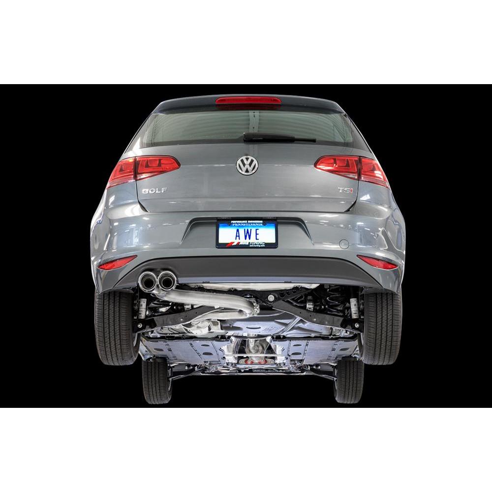 An ample dose of aggression for the Volkswagen Golf. Featuring a straight-through design, the Track Edition Exhaust revamps the MK7 Golf attitude entirely, providing a more pronounced, aggressive tone in the mid-range by replacing the forward resonator with a straight pipe section. This provides an ample dose of grunt without being boomy inside the cabin. This product cannot be returned or exchanged based upon volume preference!When it comes to tips, the Track Edition finishes off with 90mm slash-cut tips, featuring the AWE logo, so they know what team you're on. All tips are individually adjustable, allowing depth into the bumper to be set according to personal taste. They're also double walled to ensure a mirror finish - even under hard usage. Time to up your Golf game!