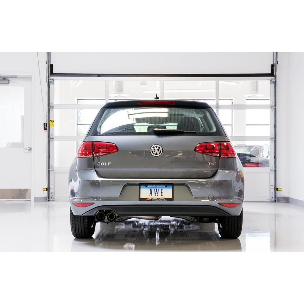 An ample dose of aggression for the Volkswagen Golf. Featuring a straight-through design, the Track Edition Exhaust revamps the MK7 Golf attitude entirely, providing a more pronounced, aggressive tone in the mid-range by replacing the forward resonator with a straight pipe section. This provides an ample dose of grunt without being boomy inside the cabin. This product cannot be returned or exchanged based upon volume preference!When it comes to tips, the Track Edition finishes off with 90mm slash-cut tips, featuring the AWE logo, so they know what team you're on. All tips are individually adjustable, allowing depth into the bumper to be set according to personal taste. They're also double walled to ensure a mirror finish - even under hard usage. Time to up your Golf game!