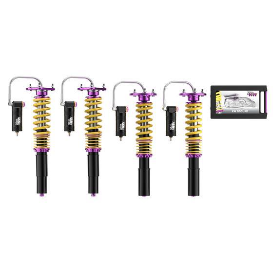 The new KW V4 Racing sport coilover kit is a further development of our GT4 customer sports applications and therefore the ideal performance tool for track tools and purebred racecars. In comparison to a KW V3 Clubsport coilover kit, the KW V4 Racing does not come with a parts certificate. In consequence, this coilover kit is exclusively made for track day and circuit uses with motorsport tires. The KW V4 Racing is independently adjustable in lowspeed and highspeed compression and lowspeed rebound.