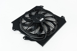Optional all-aluminum fan shroud with 12" high-performance SPAL Fan in Black for the Black Series CSF Ultimate K-Swap Radiator (CSF #2850KB)