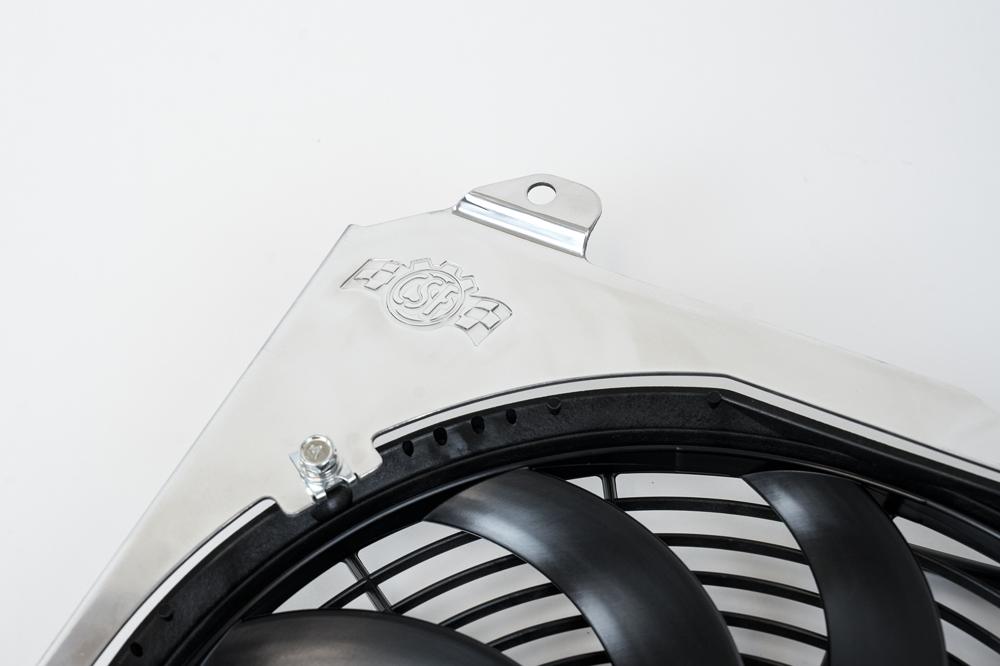 Optional all-aluminum fan shroud with 12" high-performance SPAL Fan for the CSF Ultimate K-Swap Radiator (CSF #2850K)