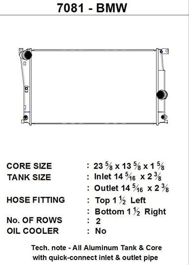 - Drop-in Fit Requiring No Modifications to Install - Accepts All Attaching OEM Components Including "Quick-Connect" Hoses, AC Condenser, Mounting Brackets and Fan Shroud